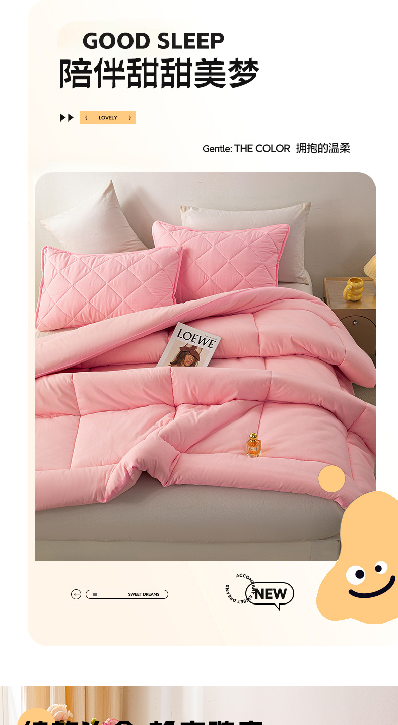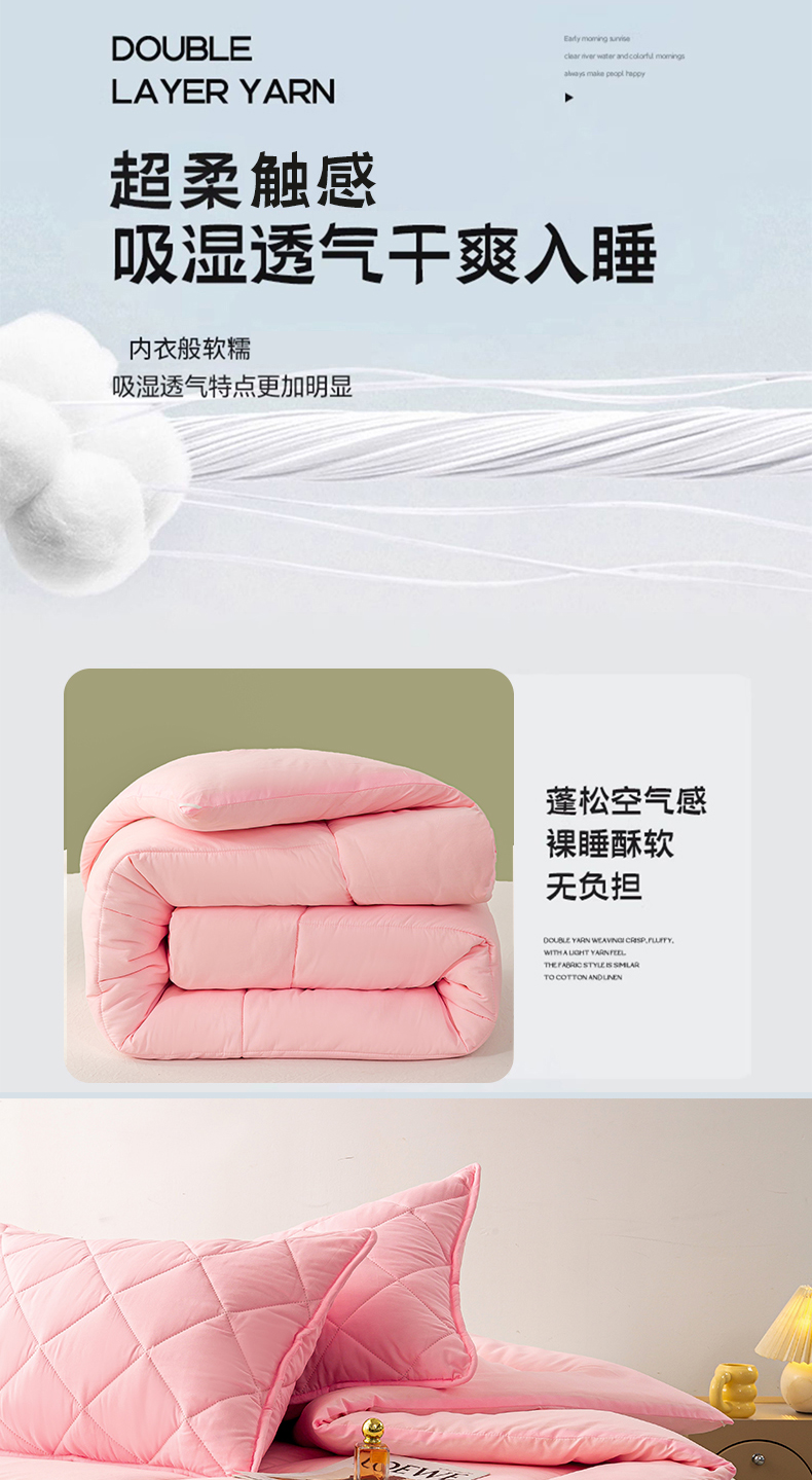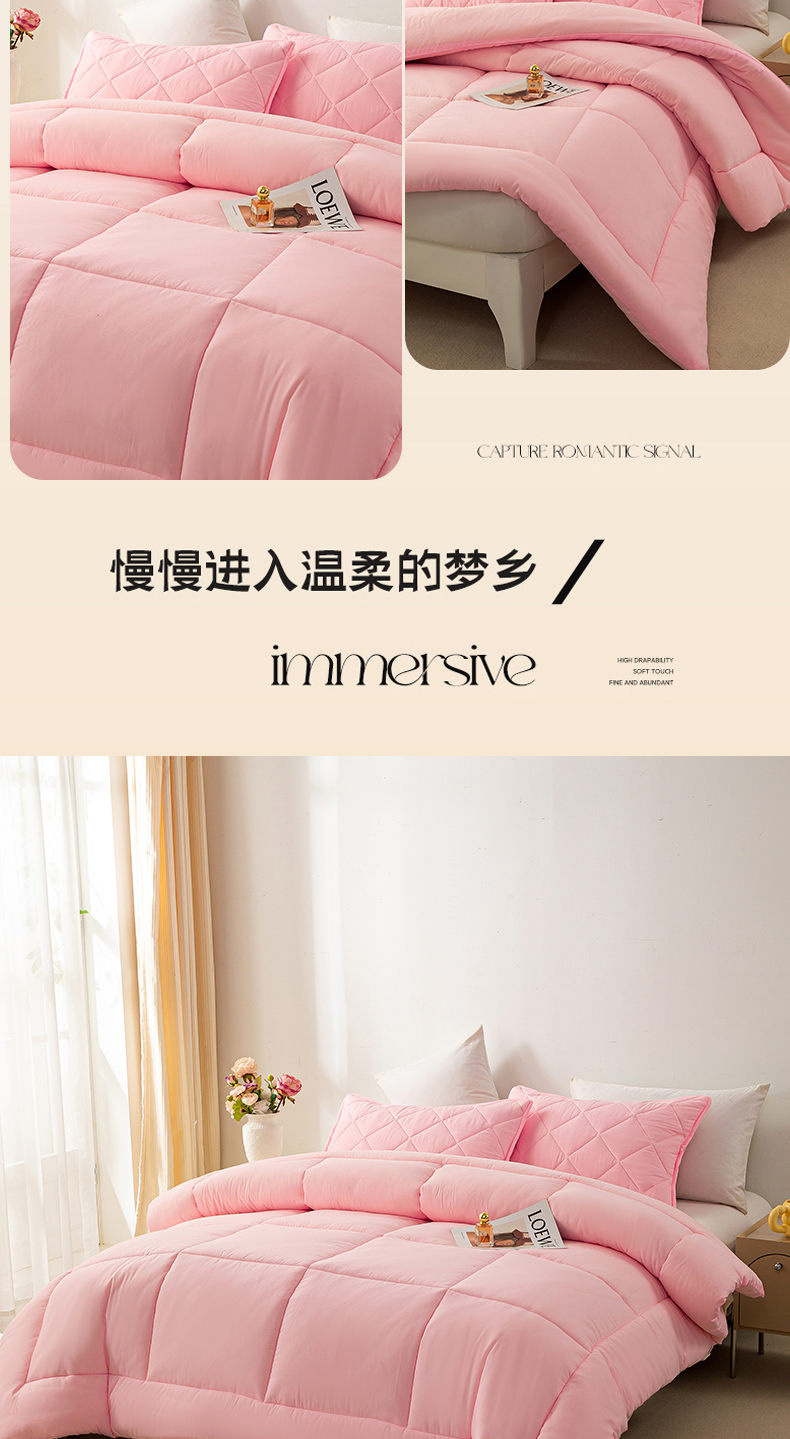 • 91家纺网 家纺一手货源 找家纺 憨豆家纺 2026新款磨毛四季被春秋被丝棉加厚冬被学生宿舍被子酒店宾馆跨境被芯 可爱粉