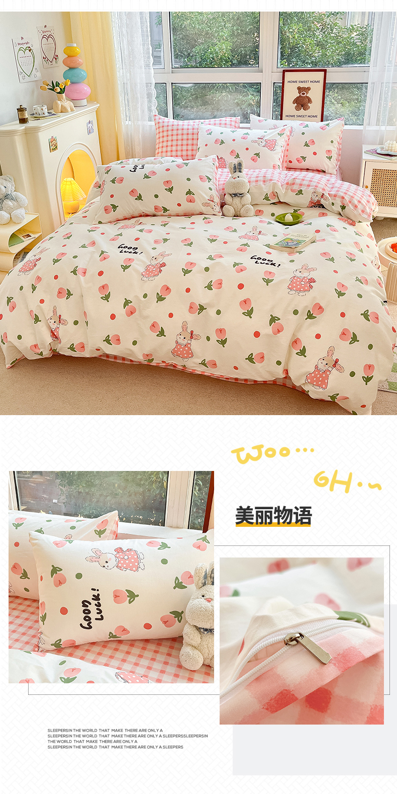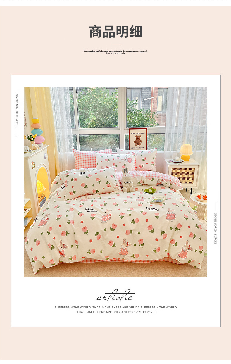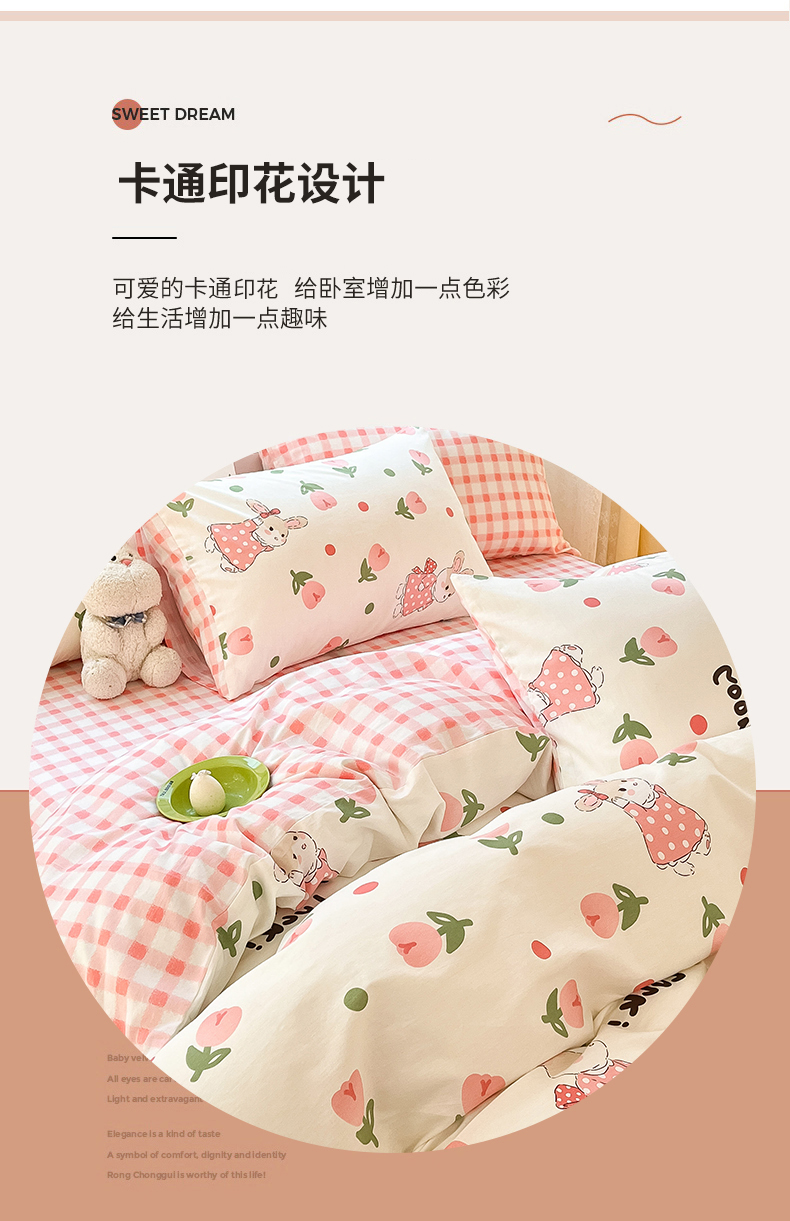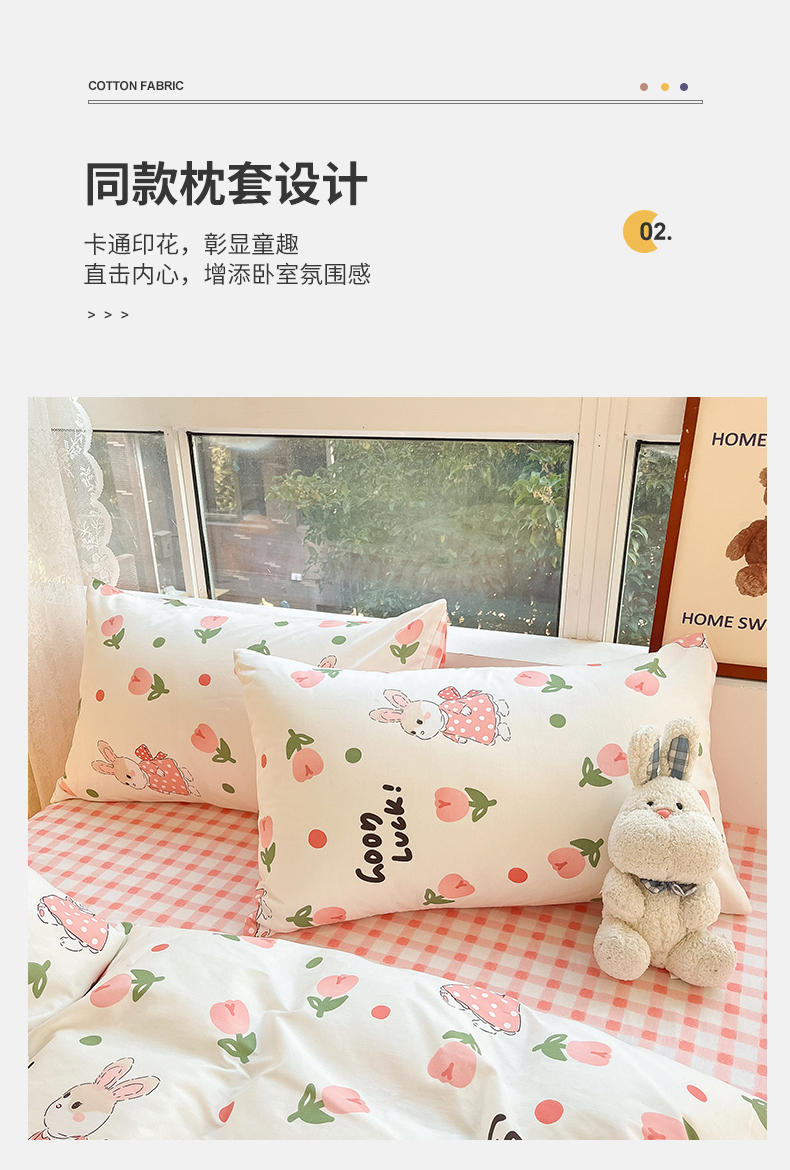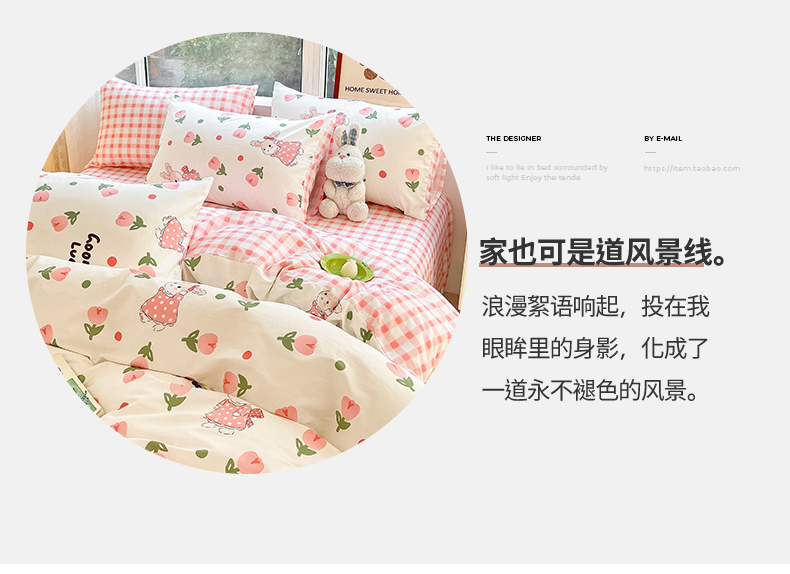 当前位置: 91家纺网 > 商品网购 > 床品套件 > 四件套 > 全棉普通四件套 > 吉象家纺 2025新款亲肤舒适全棉纯棉小清新卡通系列四件套 郁金香粉兔