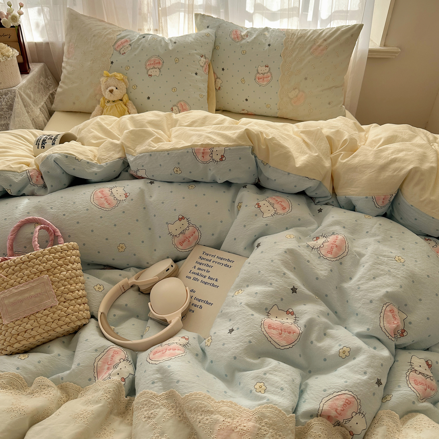 当前位置: 91家纺网 > 商品网购 > 床品套件 > 四件套 > 其它四件套 > 顾里家纺 2025新款蕾丝花边卡哇伊云感皱皱纱四件套套件 彩蝴蝶结
