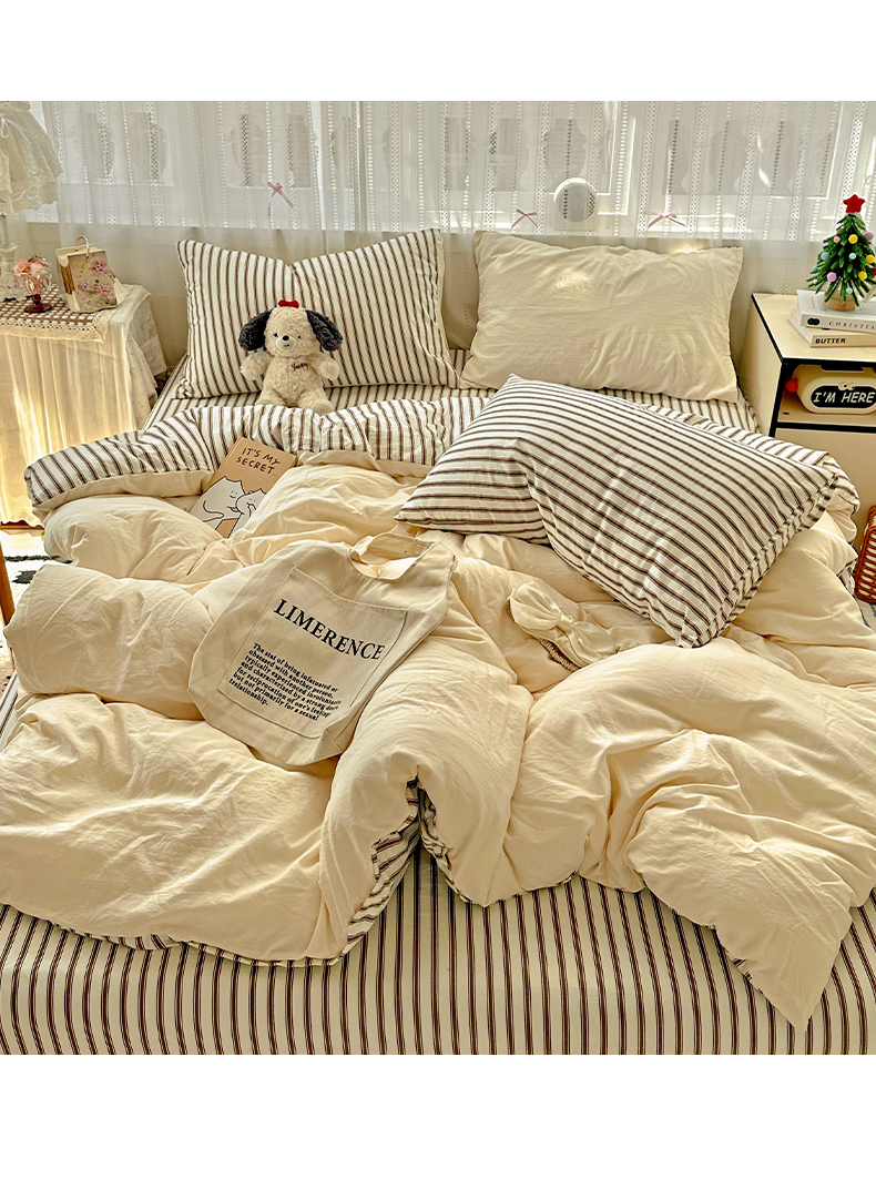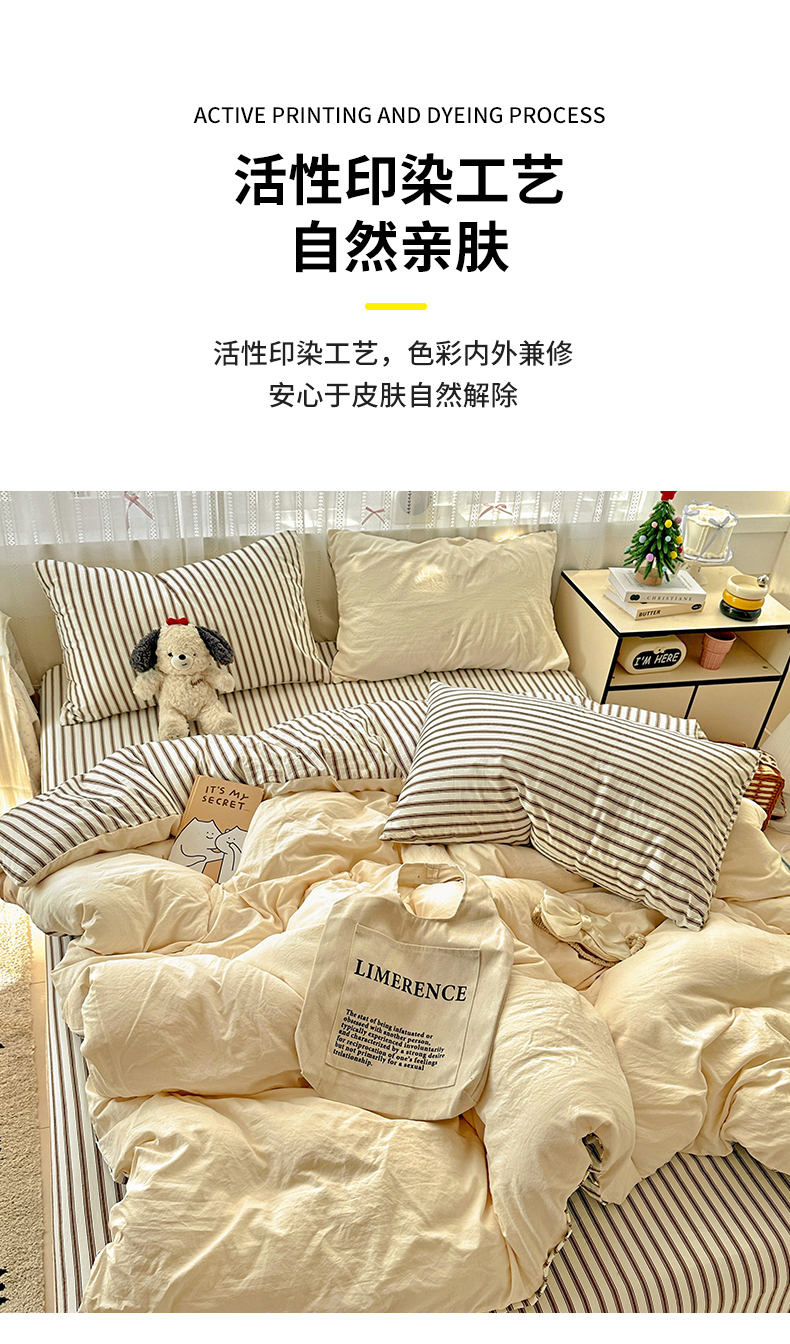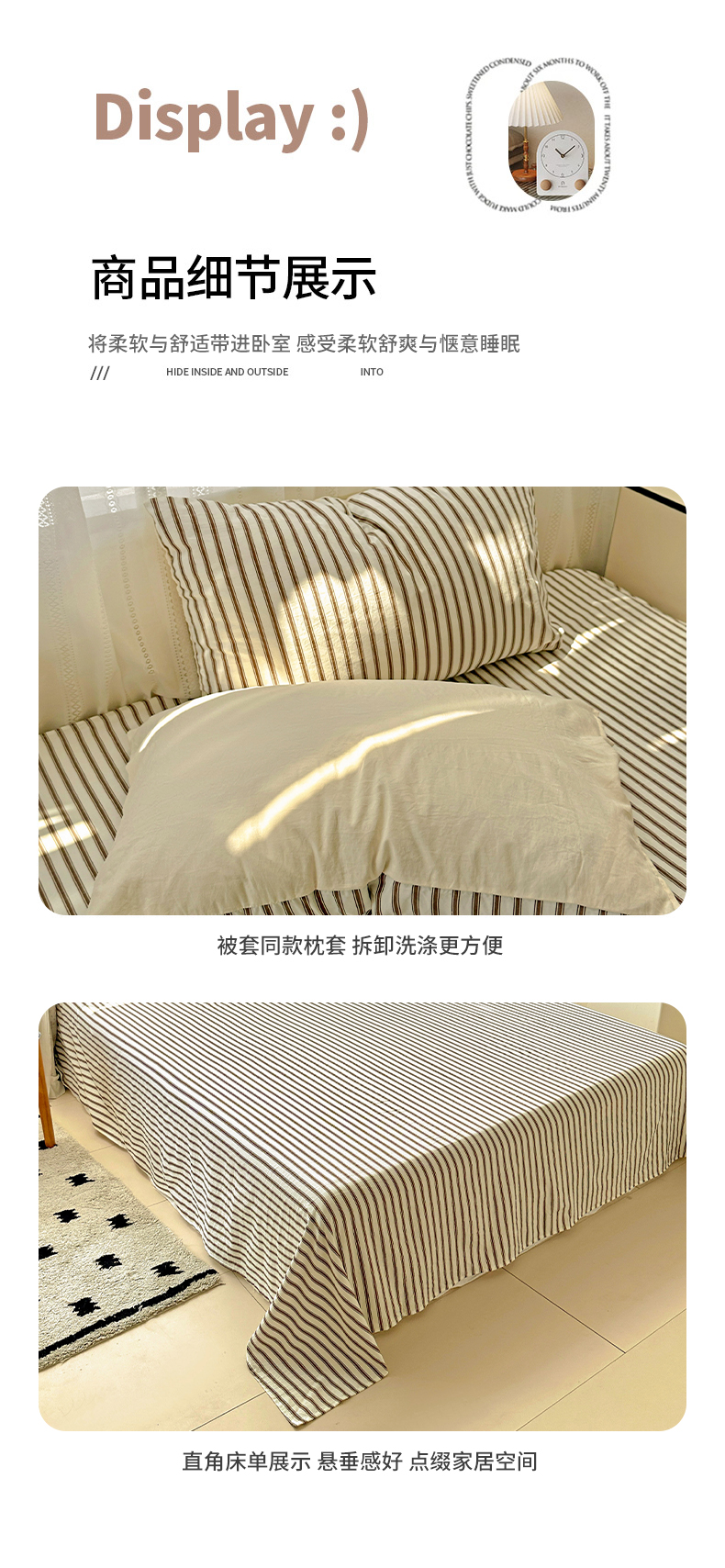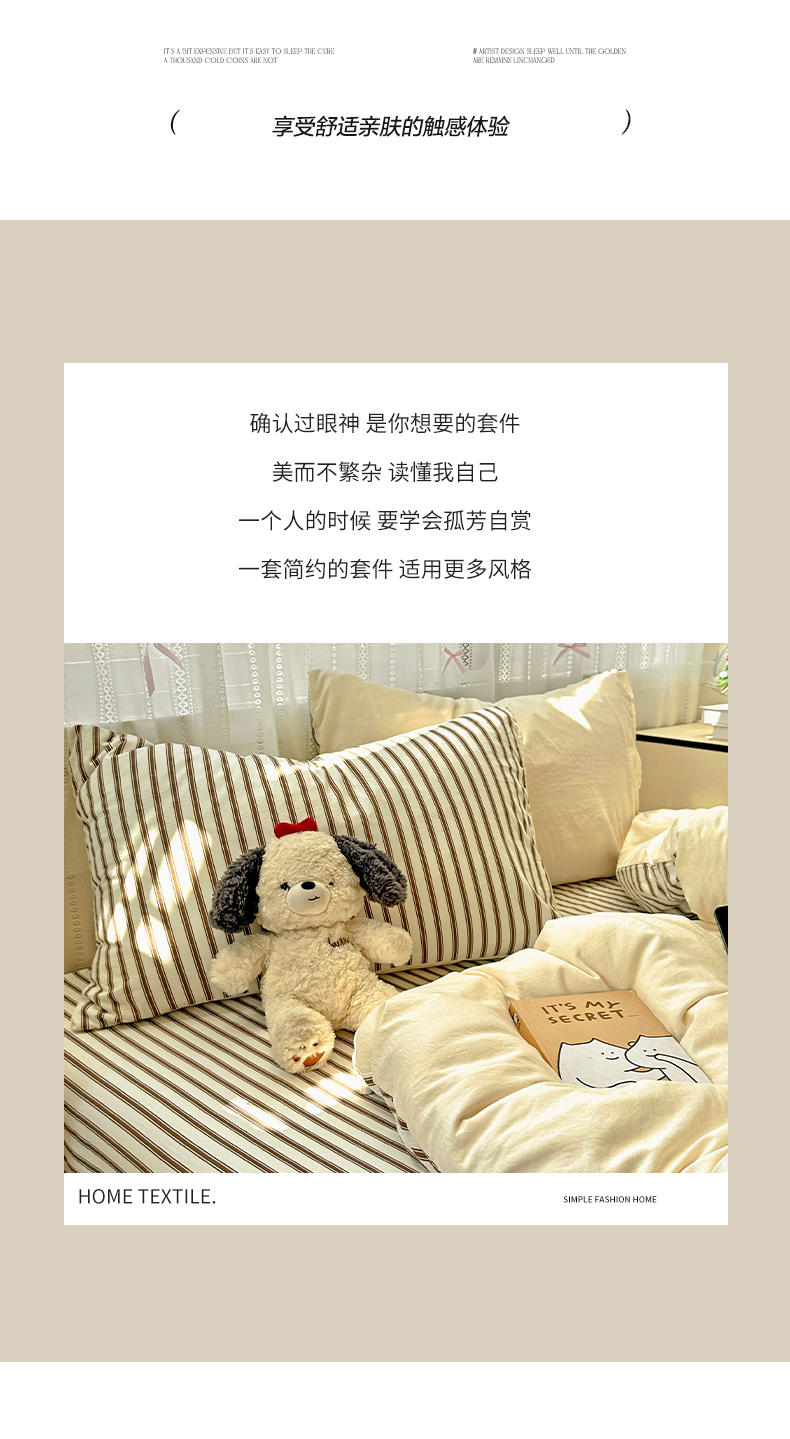 当前位置: 91家纺网 > 商品网购 > 床品套件 > 四件套 > 其它四件套 > 繁花家居 2025新款高克重水洗棉云朵棉条纹撞色系列四件套 可可白+咖条