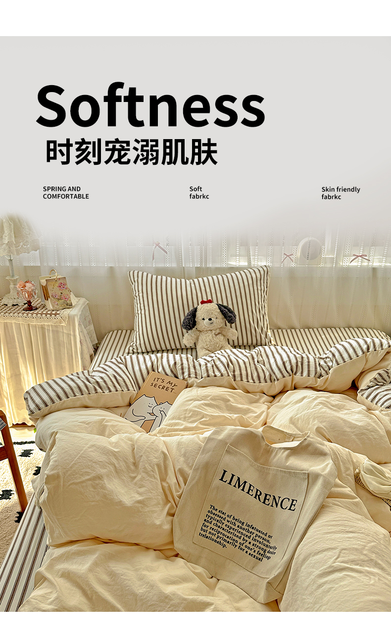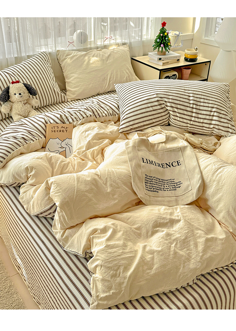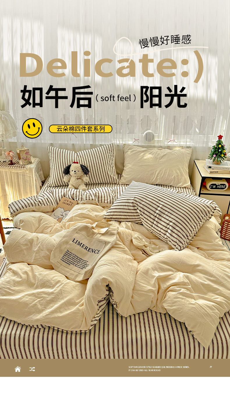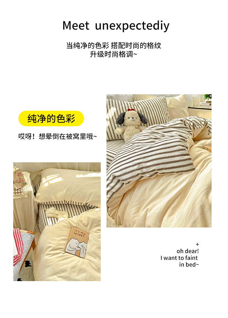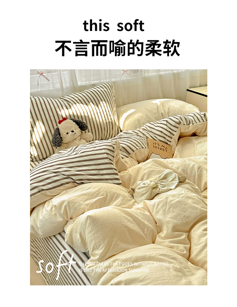 当前位置: 91家纺网 > 商品网购 > 床品套件 > 四件套 > 其它四件套 > 繁花家居 2025新款高克重水洗棉云朵棉条纹撞色系列四件套 可可白+咖条