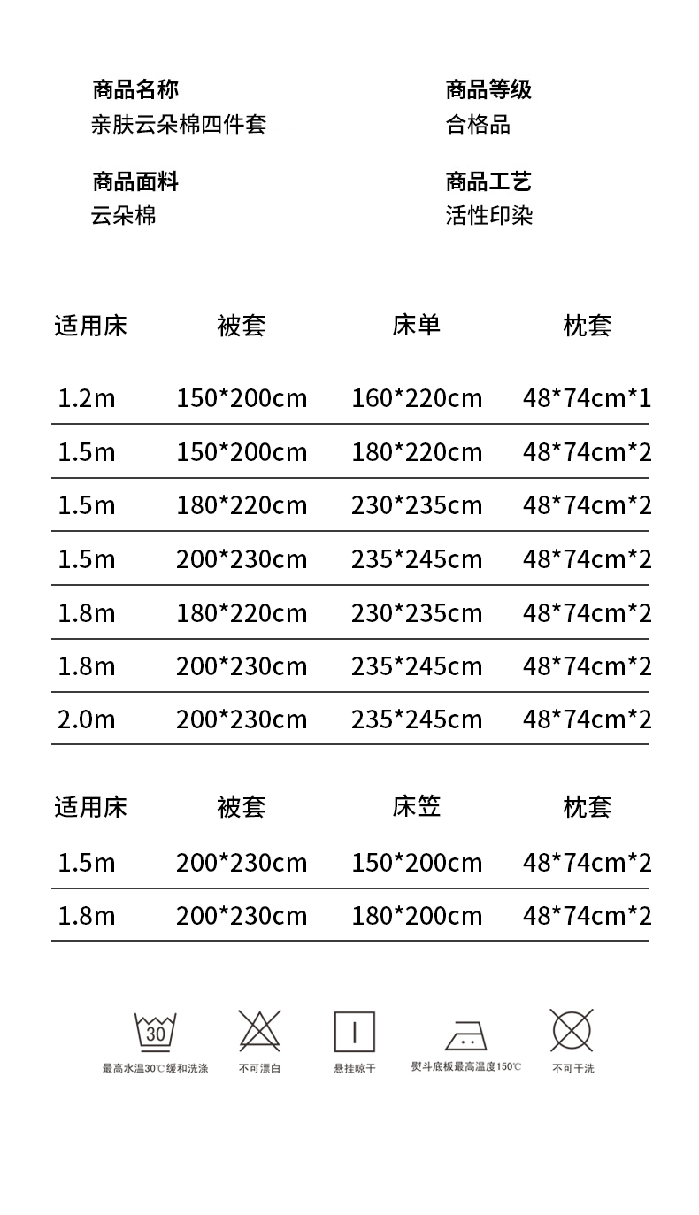 【床笠款】1.5四件套-被套200x230 | ¥58.00 |