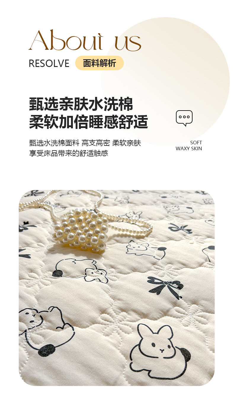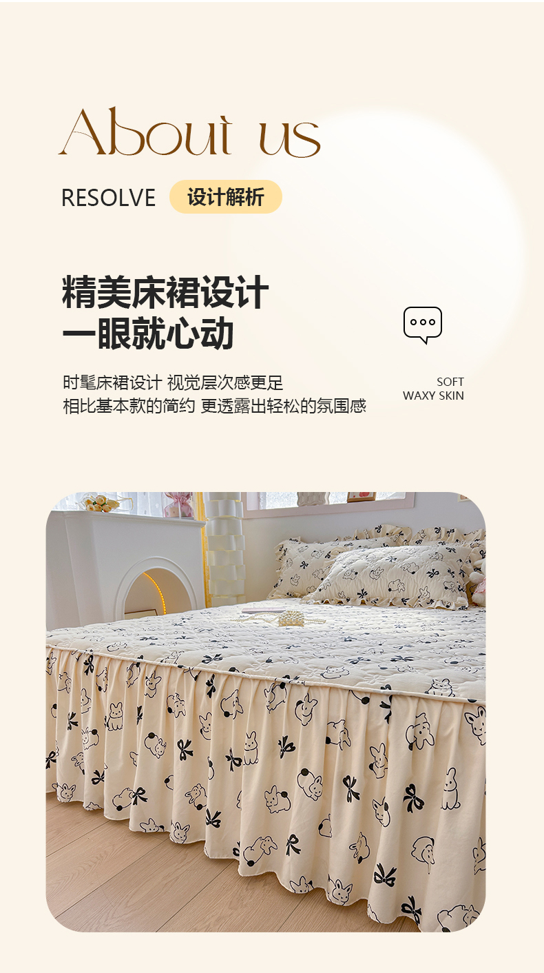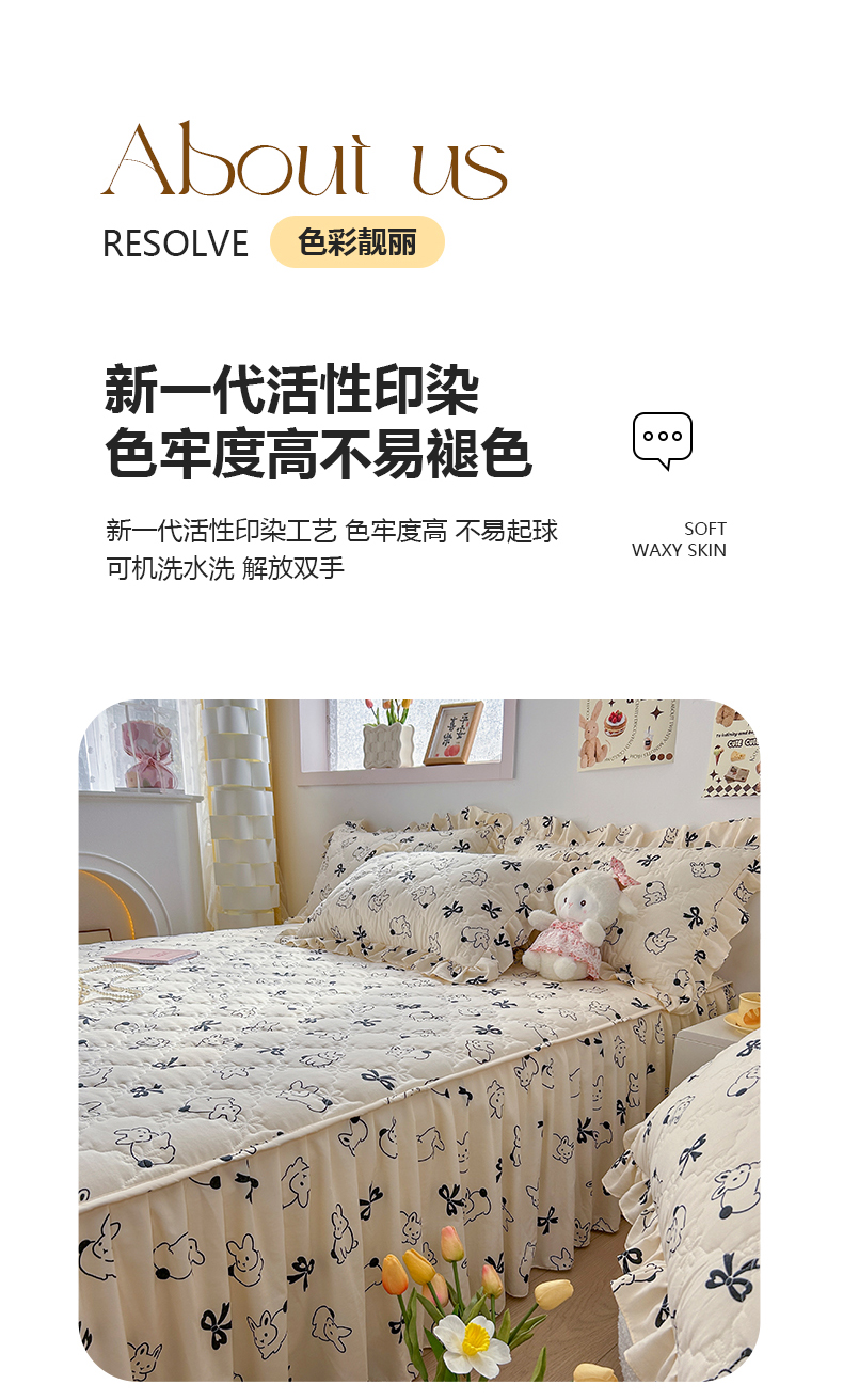 • 91家纺网 家纺一手货源 找家纺 忘忧草 2025新款亲肤水洗棉夹棉床裙--小清新系列 心动兔兔