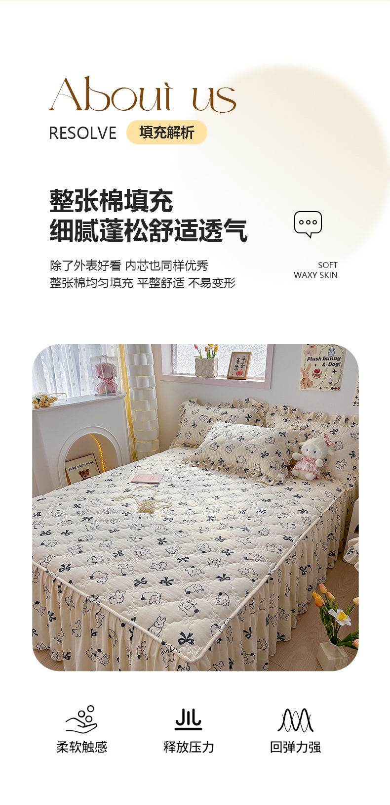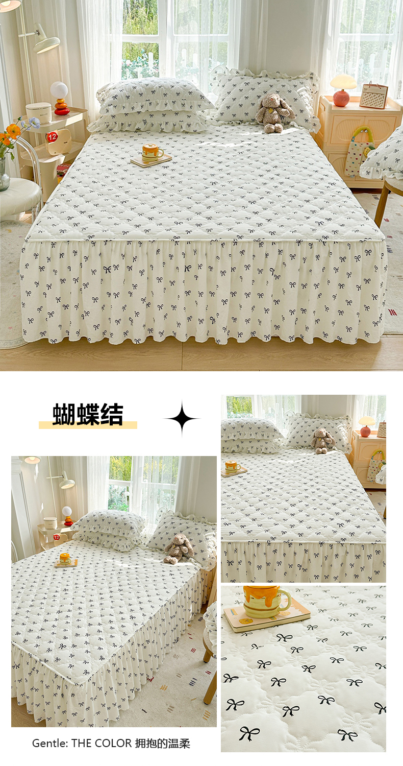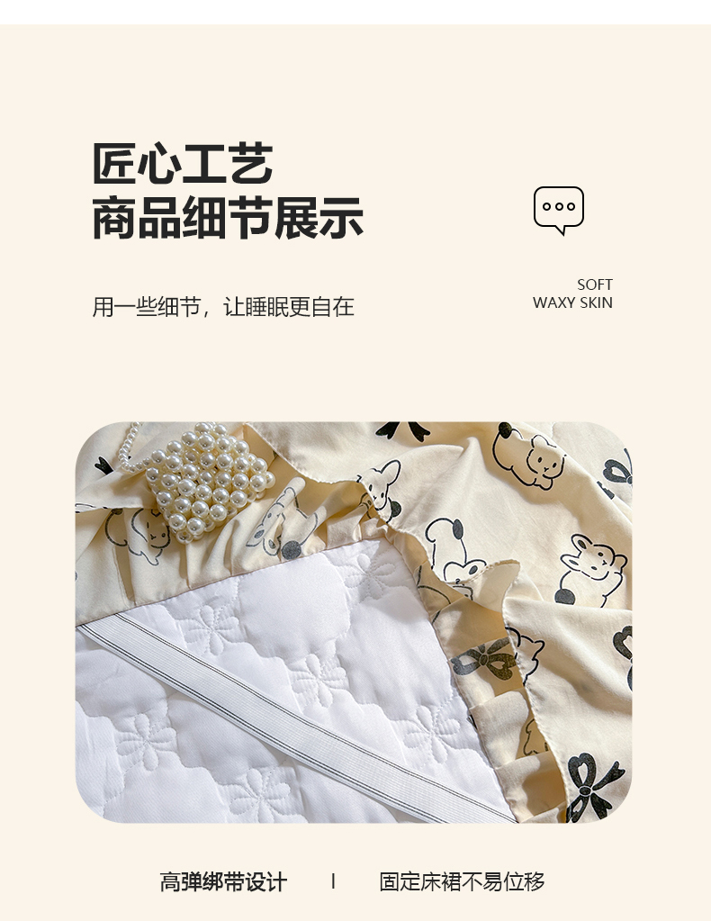 • 91家纺网 家纺一手货源 找家纺 忘忧草 2025新款亲肤水洗棉夹棉床裙--小清新系列 心动兔兔