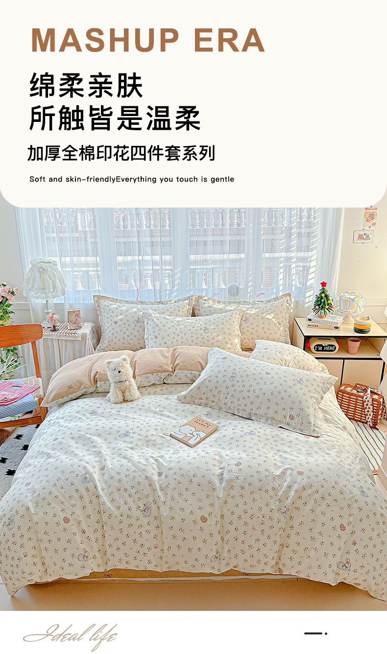 当前位置: 91家纺网 > 商品网购 > 床品套件 > 四件套 > 全棉普通四件套 > 恩泽家纺 2025新款全棉纯棉12868喷气印花系列四件套-第二批 兔子乐园