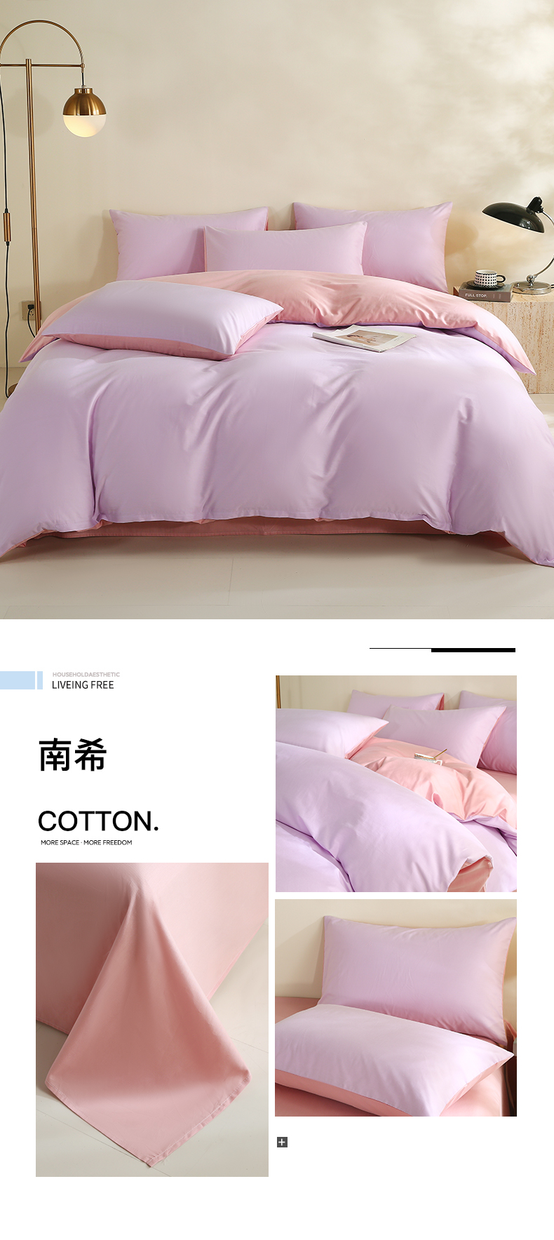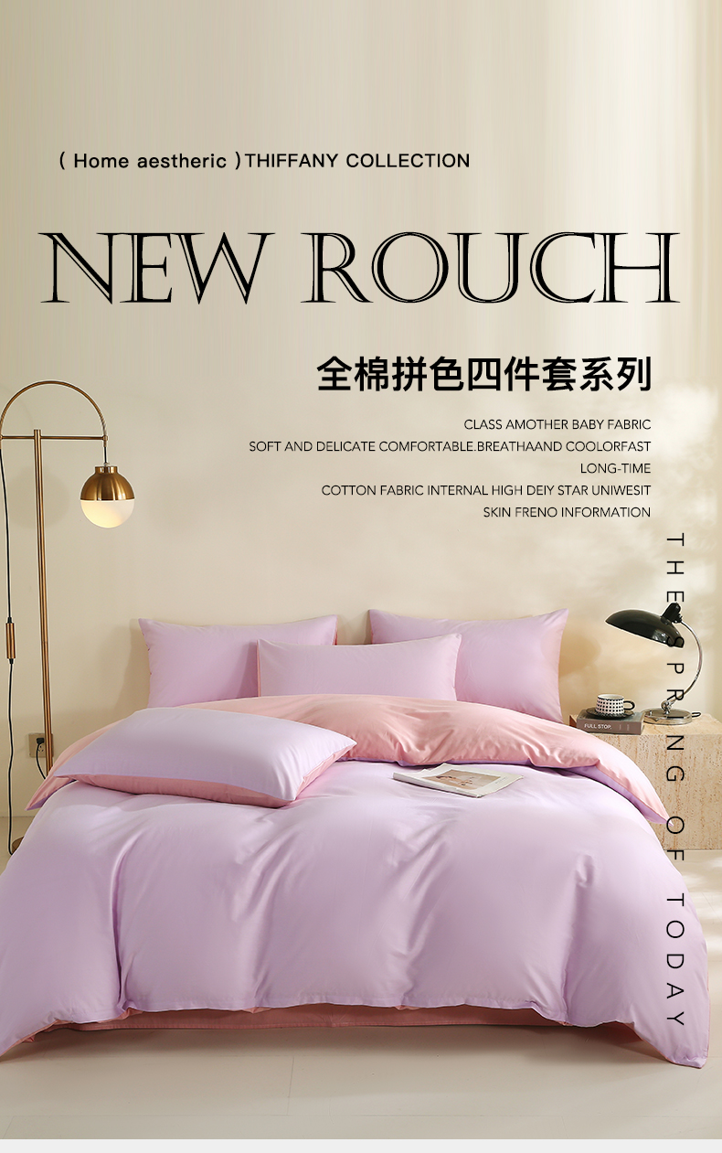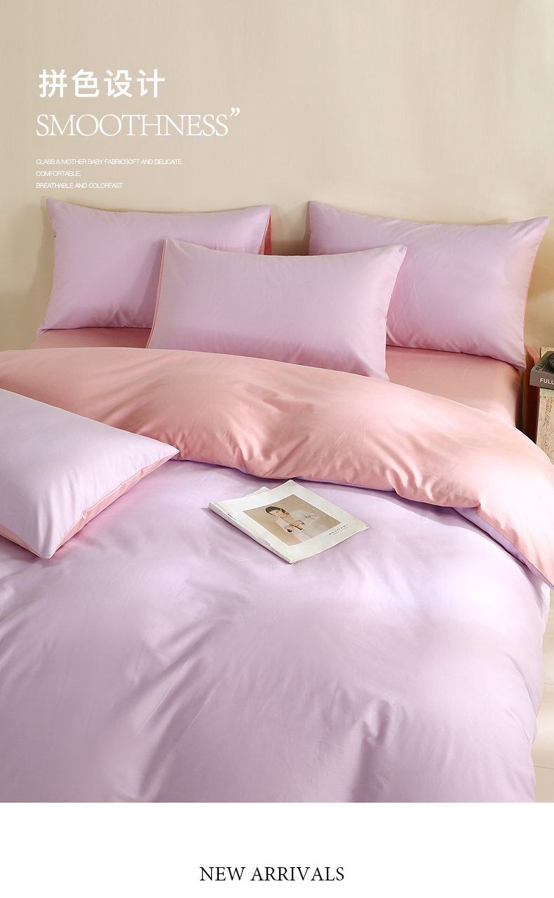 当前位置: 91家纺网 > 商品网购 > 床品套件 > 四件套 > 全棉普通四件套 > 金鑫汇家纺 2026新款全棉纯棉纯色拼色四件套 南希