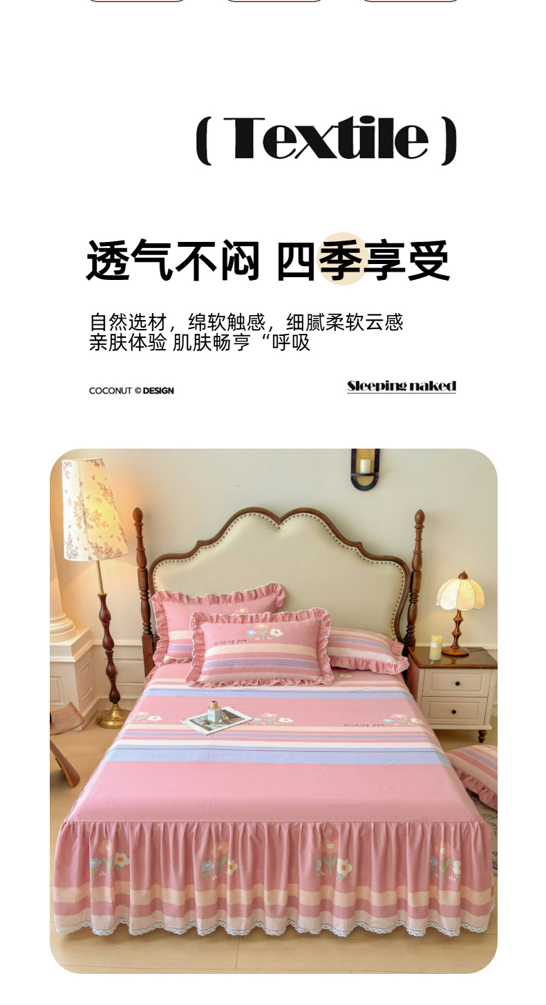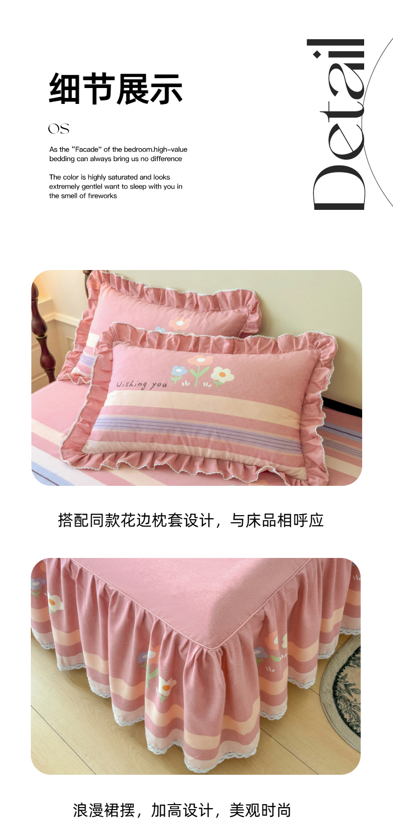 • 91家纺网 家纺一手货源 找家纺 缦彩 2025新款全棉纯棉磨毛印花床裙单品床裙单件单床裙花边床单三件套 珍妮粉