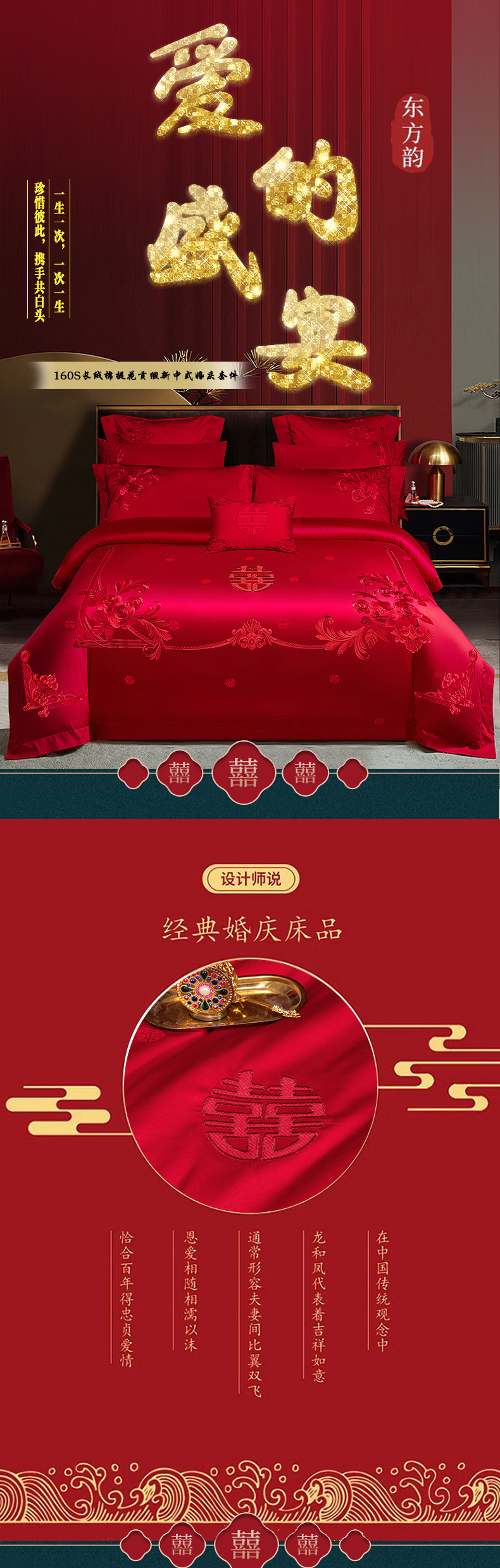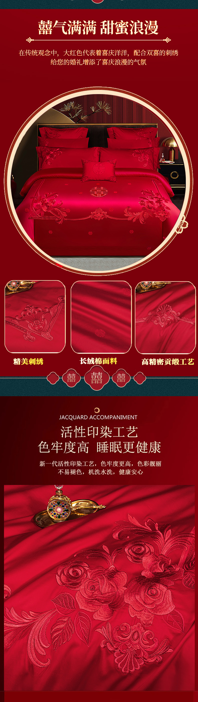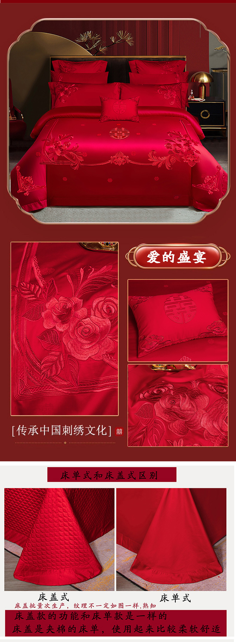 当前位置: 91家纺网 > 商品网购 > 床品套件 > 四件套 > 婚庆四件套 > 柏拉图 2025新款100s贡缎长绒棉提花婚庆系列四件套多件套 爱的盛宴-红