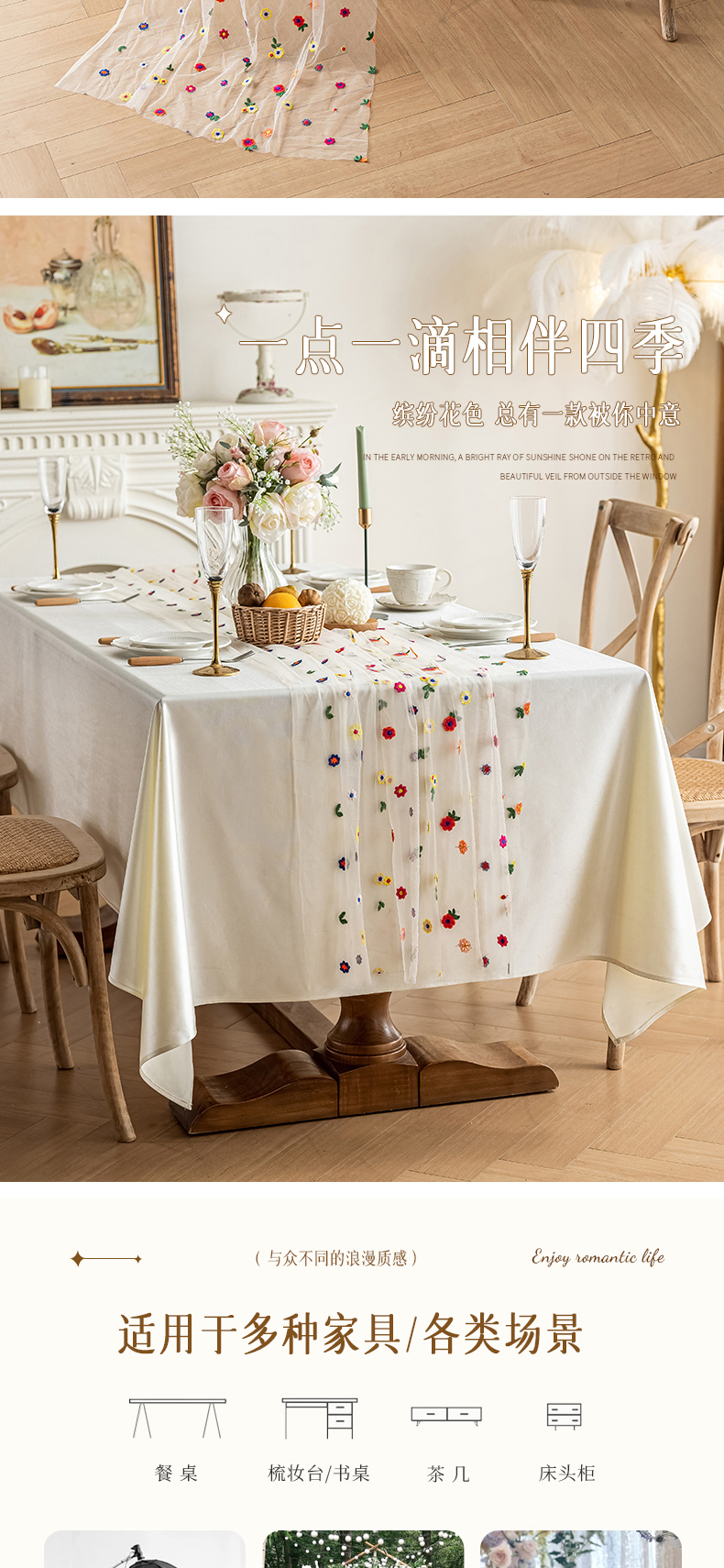 当前位置: 91家纺网 > 商品网购 > 床品定制 > 桌布/桌旗定制定做 > 南通大梧纺织 2025新款网纱绣花法式复古风小野花桌旗 小野花-黑纱 定制宽70cm内少量/米