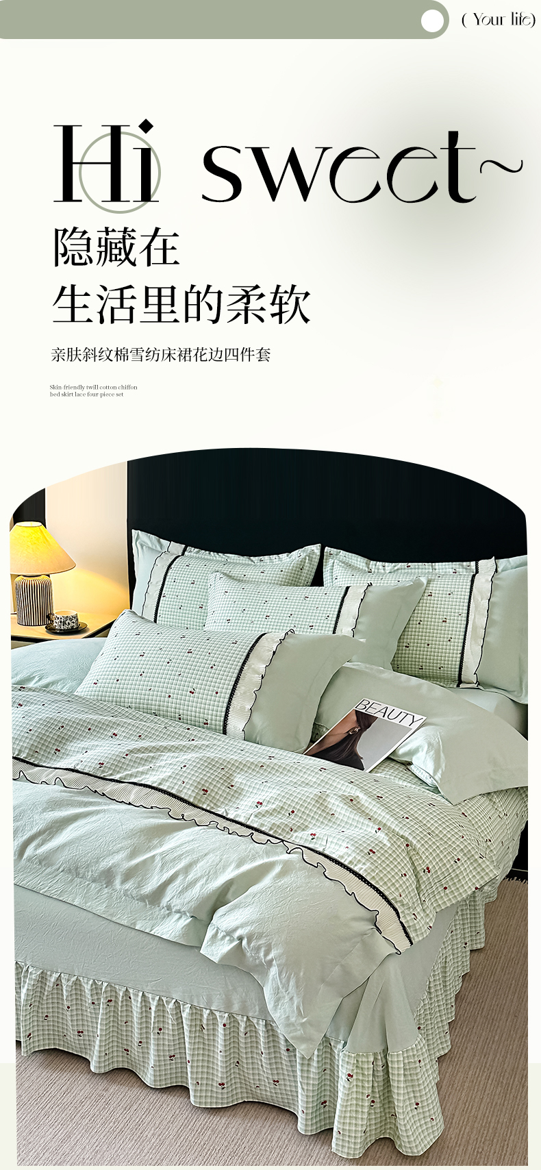 (总)梓之赫2025新款艾格棉床裙绣花款四件套,莫奈花园-樱花粉,莫奈庄园-冰肌玉,莫奈庄园-湖兰,莫奈庄园-抹茶绿,莫奈庄园-奶油黄,莫奈庄园-浅紫,莫奈庄园-沙滩灰