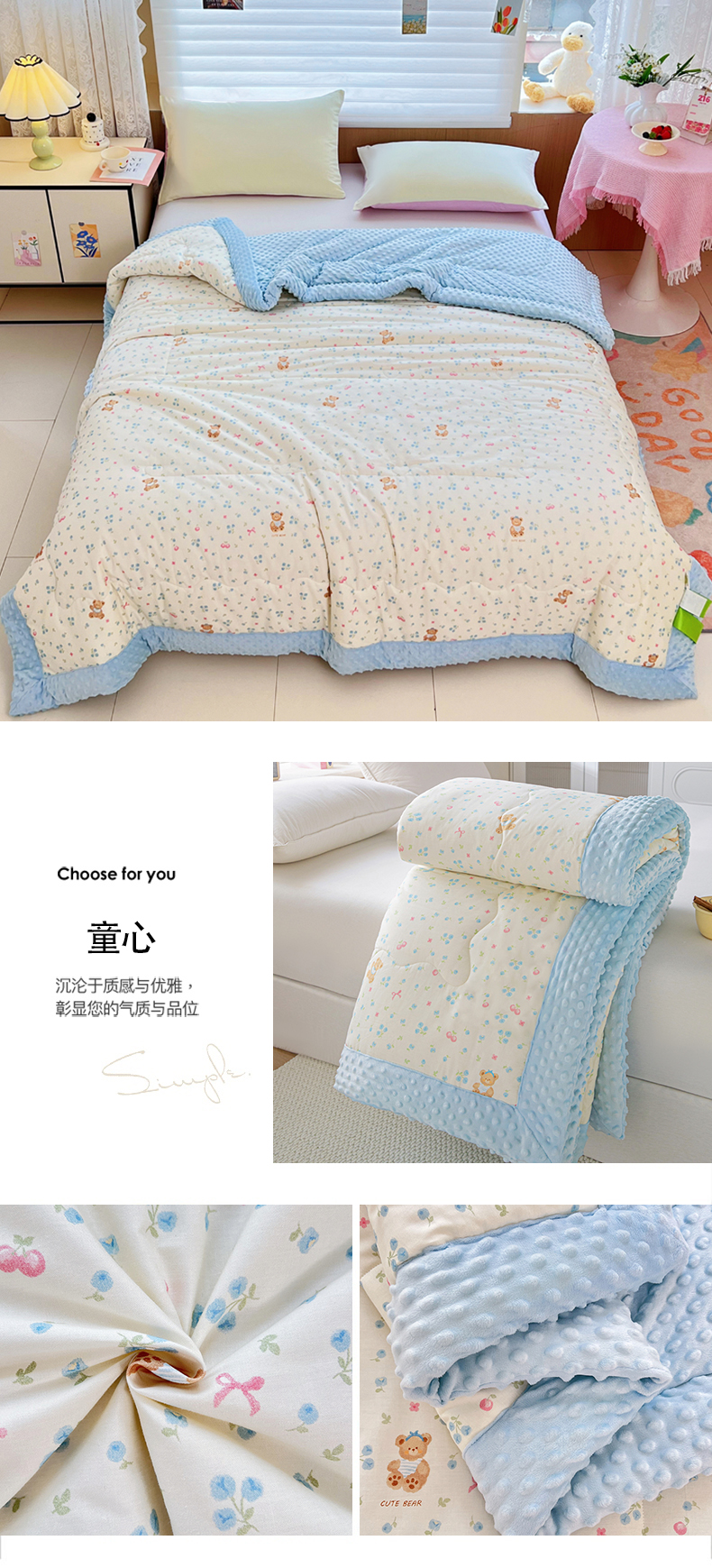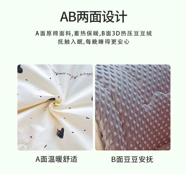 商品名称:天瑜家纺 2025新款A类全棉纯棉豆豆绒AB面设计被芯被子被芯 桃桃