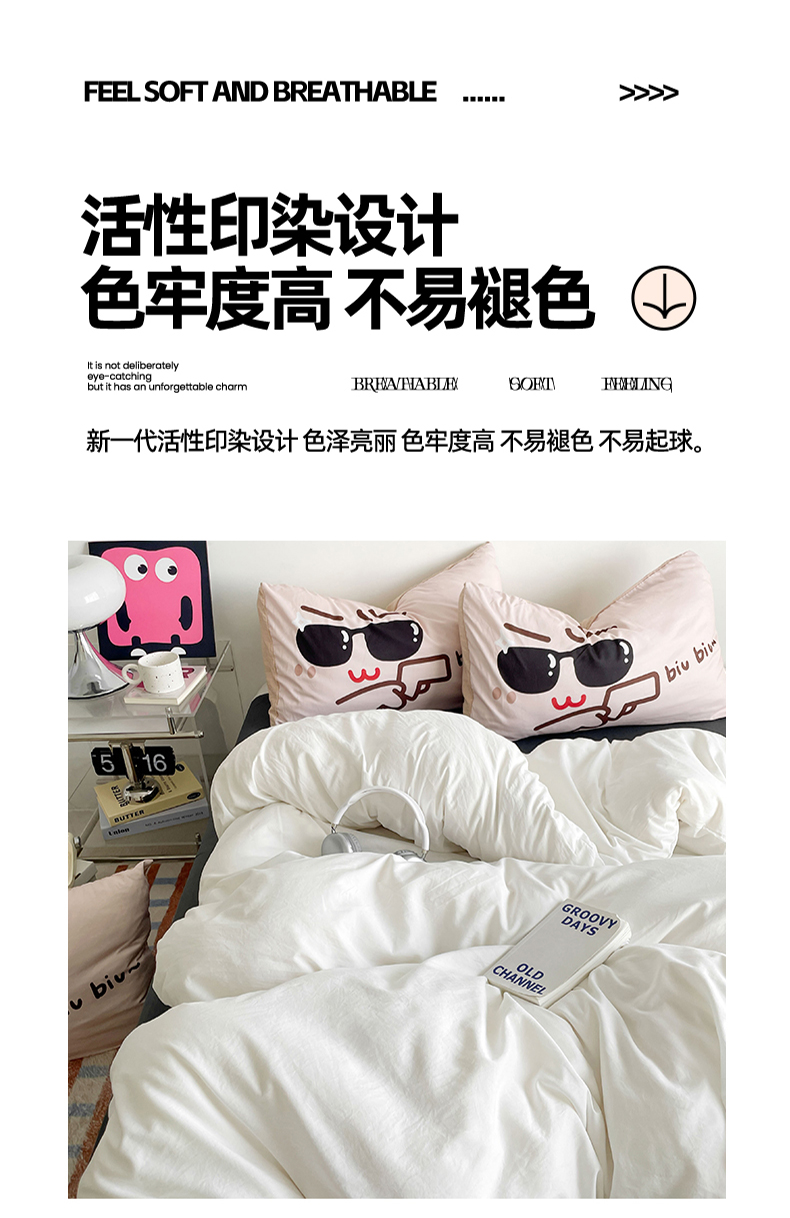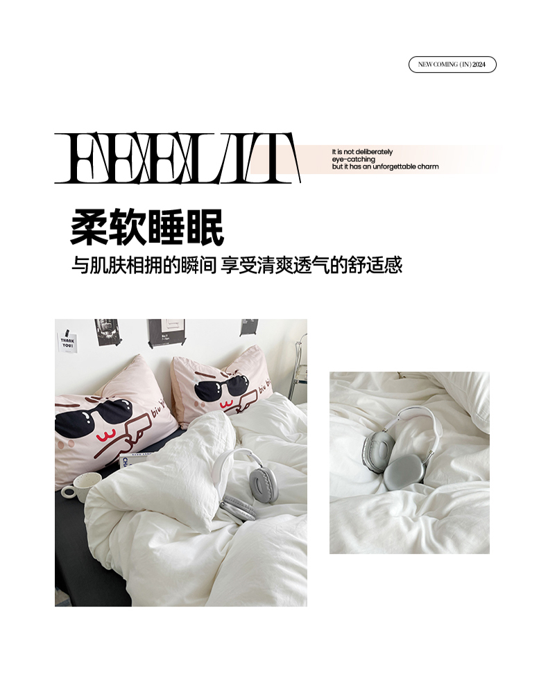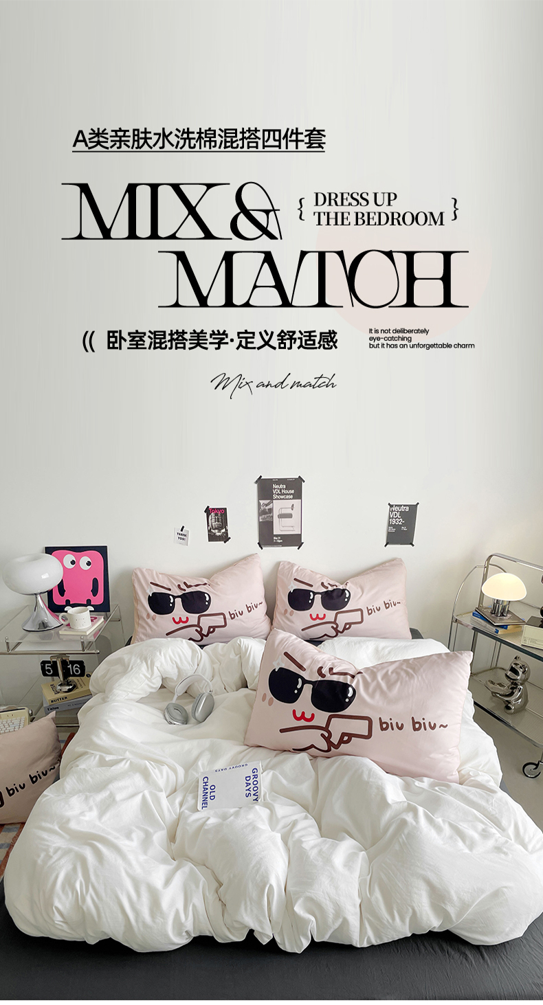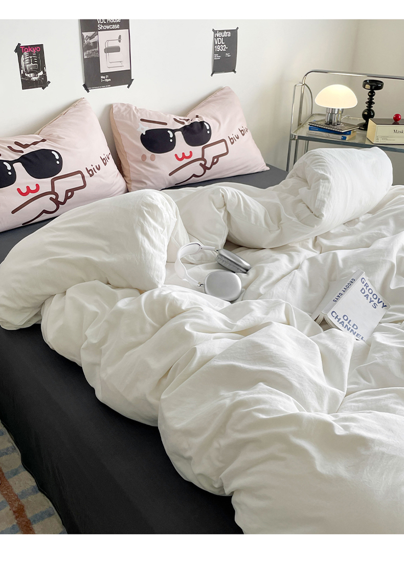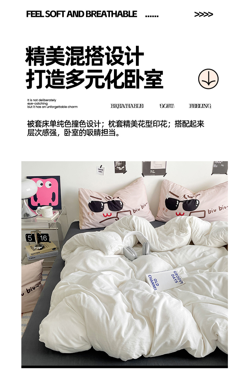 当前位置: 91家纺网 > 商品网购 > 床品套件 > 四件套 > 水洗棉四件套 > 优卡迪家纺馆 2025新款A类亲肤水洗棉大眼萌纯色混搭四件套 大眼萌-米白灰