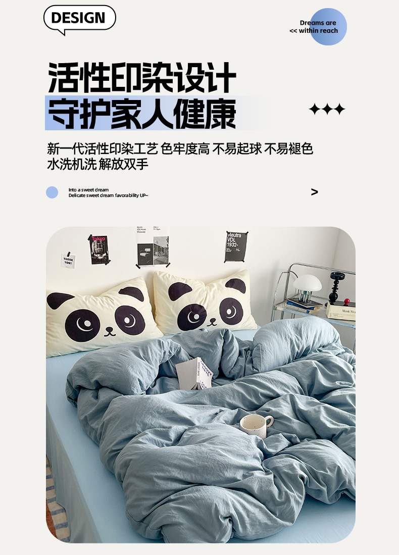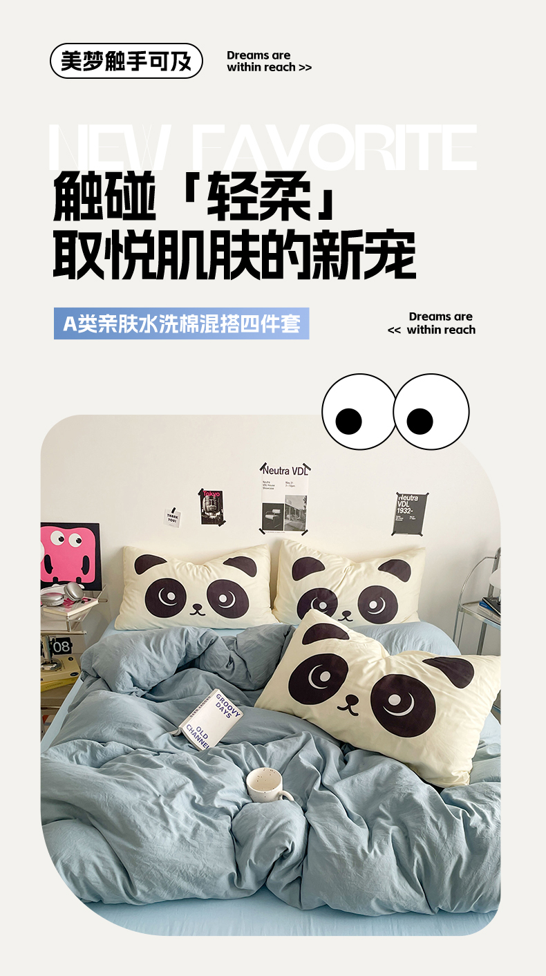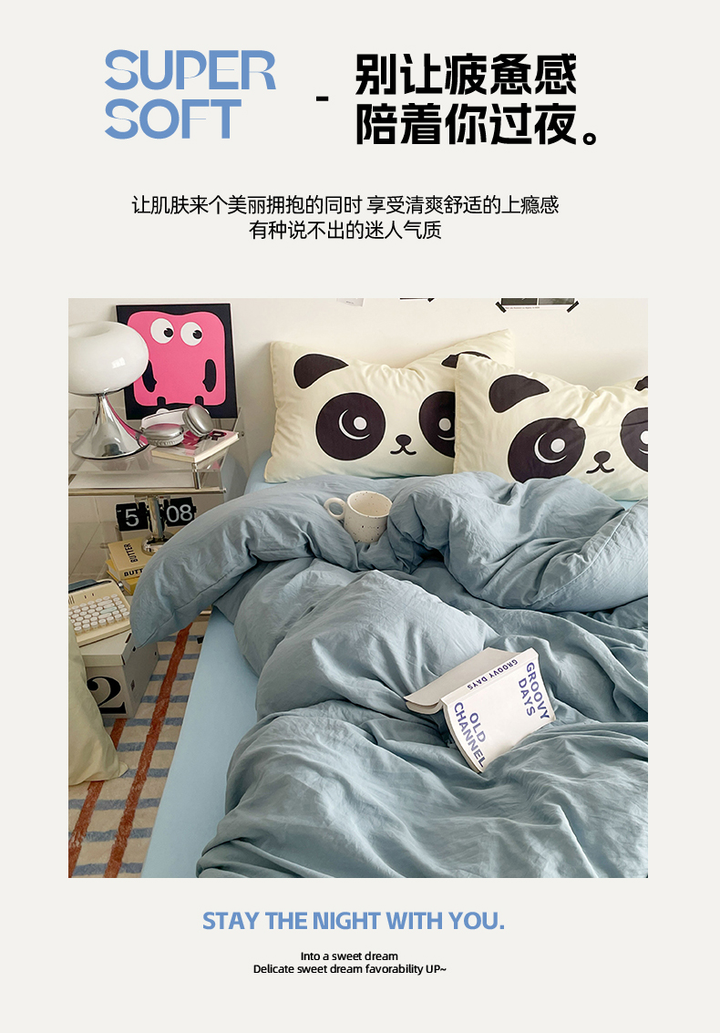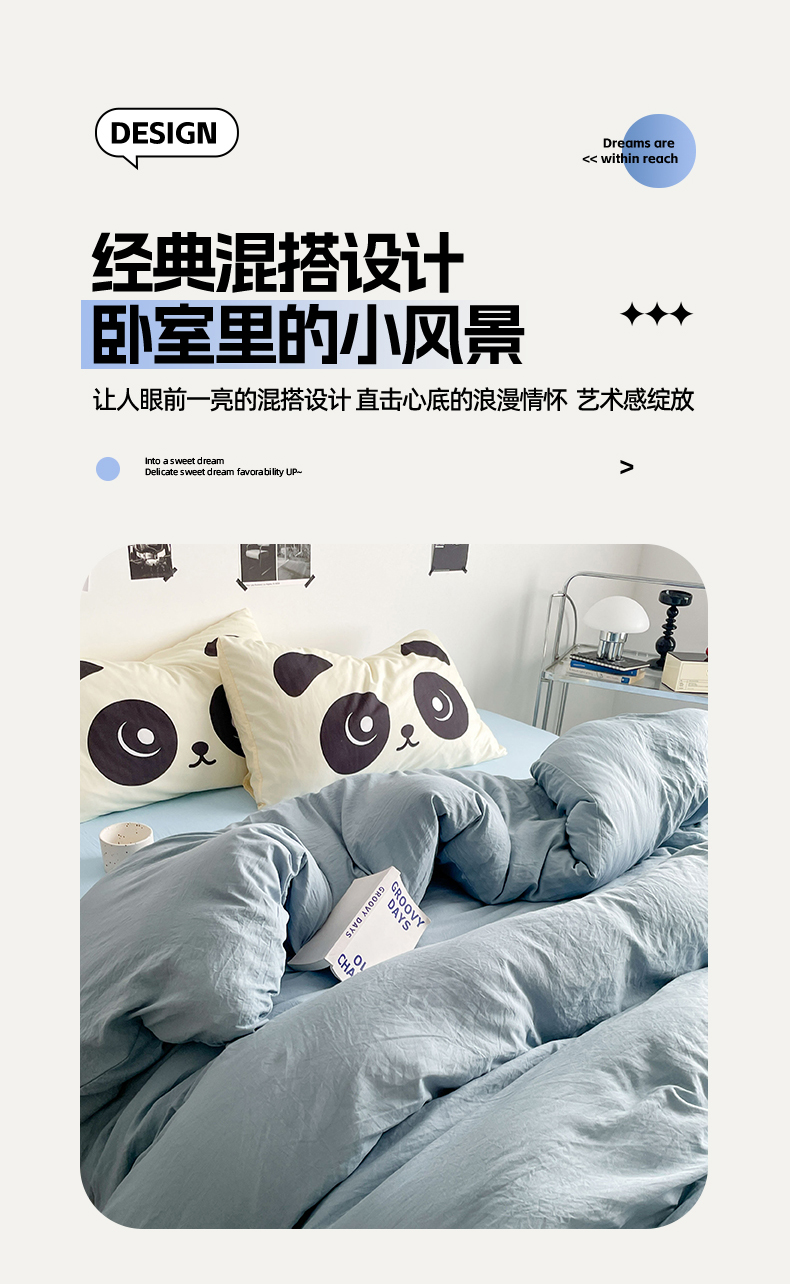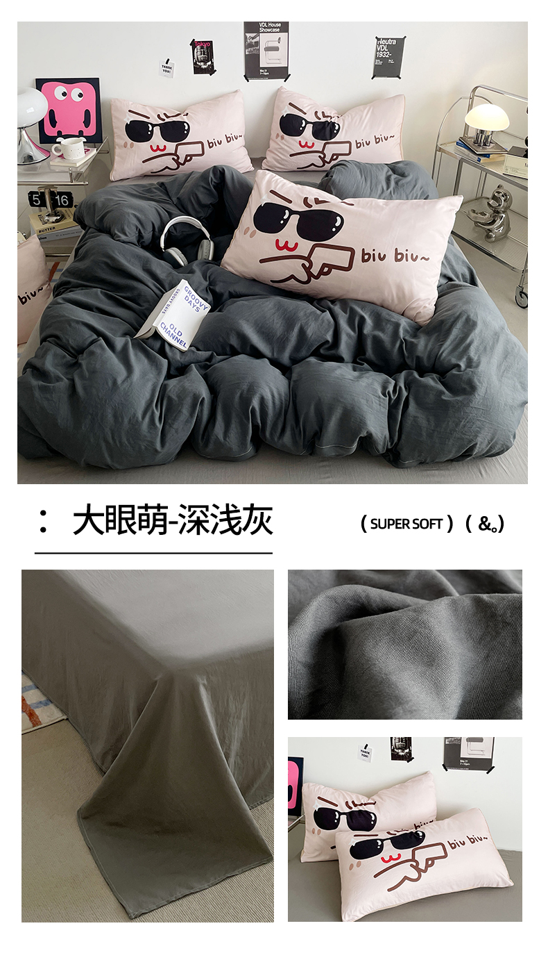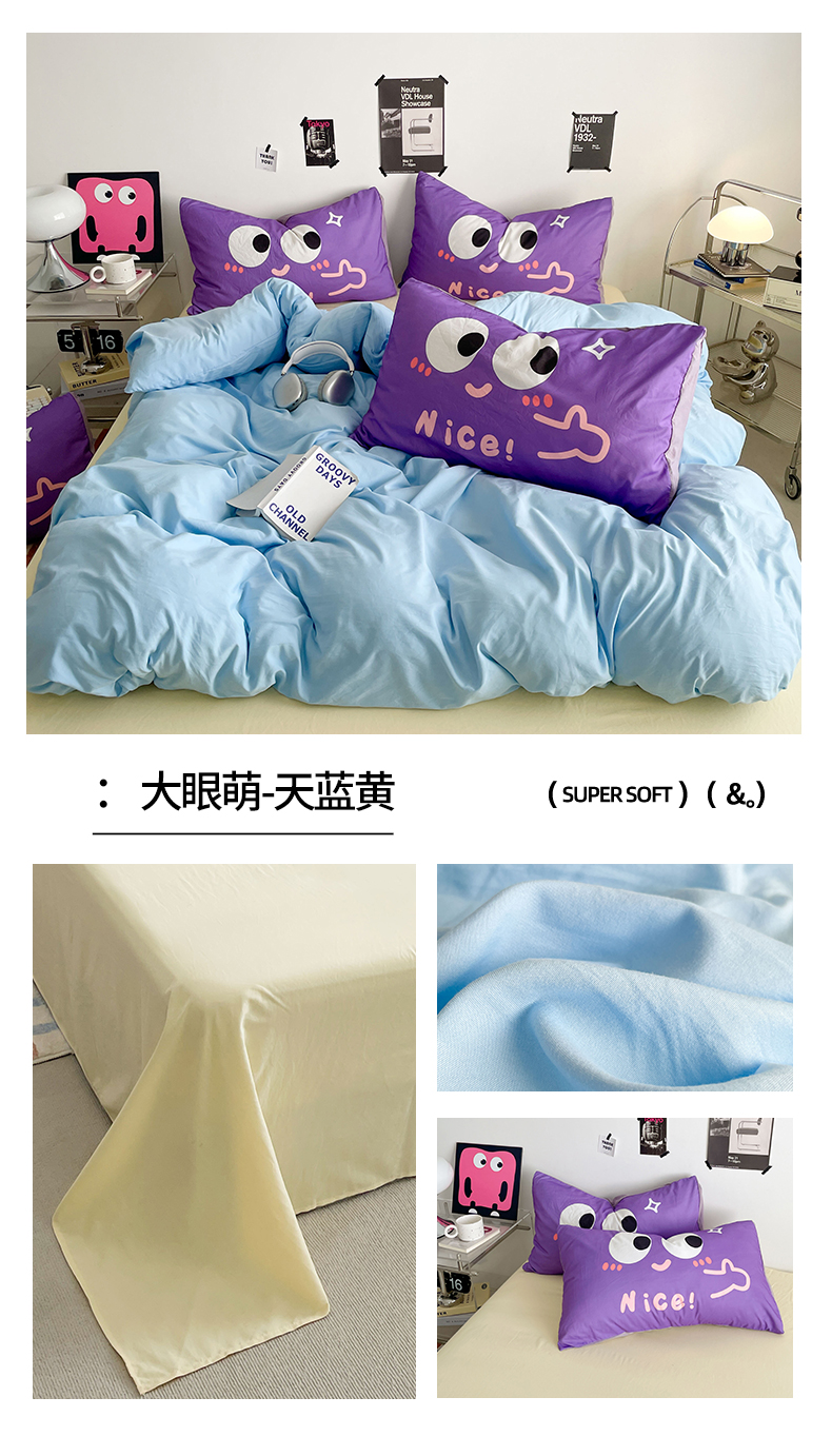 当前位置: 91家纺网 > 商品网购 > 床品套件 > 四件套 > 水洗棉四件套 > 优卡迪家纺馆 2025新款A类亲肤水洗棉大眼萌纯色混搭四件套 大眼萌-雾天蓝