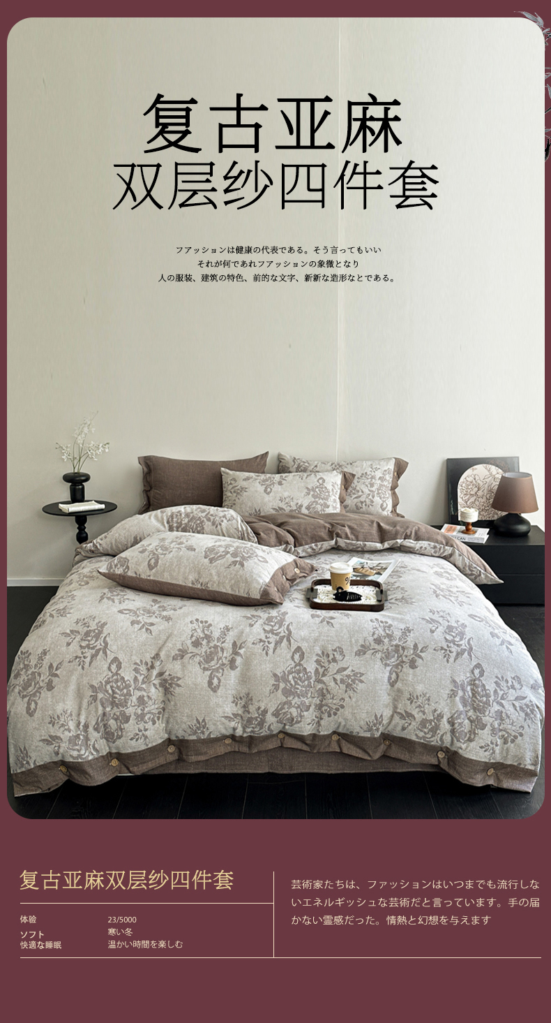 (总)漫仙阁家纺 2025新款秋冬新款复古风高端原麻四件套,组合图仅供参考,茶颜,春日来信,古奈绿,锦瑟,南城旧梦,秋意浓