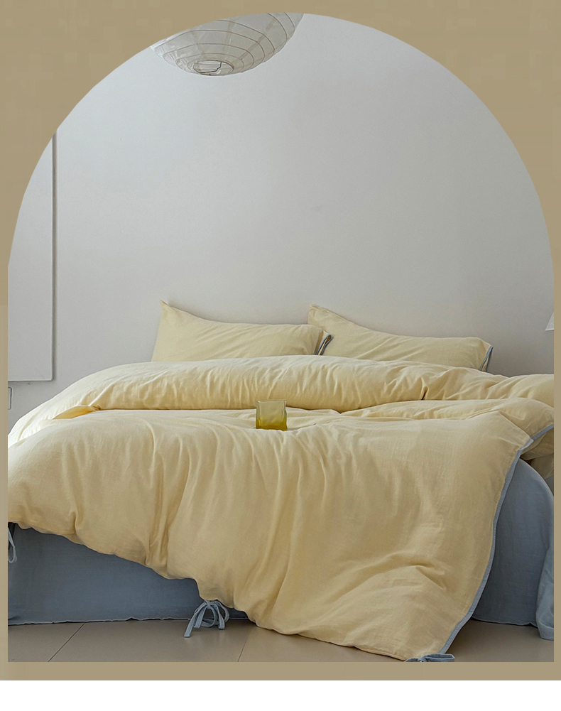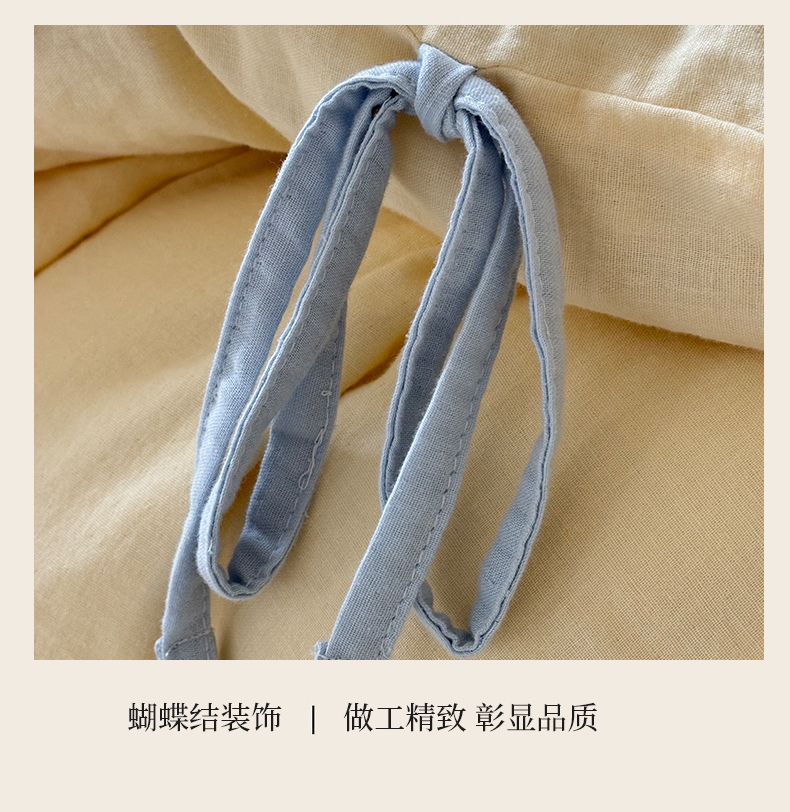 当前位置: 91家纺网 > 商品网购 > 床品套件 > 四件套 > 其它四件套 > FORTWO家纺原创设计(FOR TWO家纺) 2025新款双层纱撞色包边蝴蝶结款四件套-海盐 海盐-香草黄