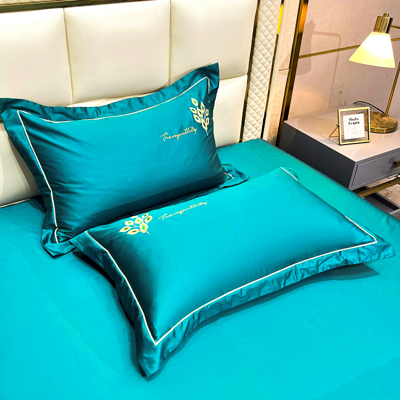 艾迪尚家纺 2025新款120支刺绣长绒棉四六件套(新拍)-枕套 孔雀-月光蓝