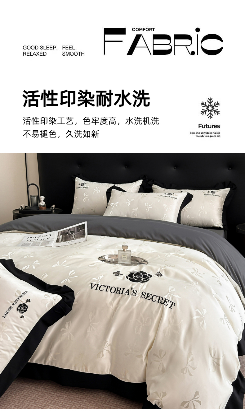 (总)花沐家居 2025新款数码印花潮牌云朵棉四件套,白色小香,粉豹纹,黑白老花,黑色小香,花千树,景年,蓝幕,绿色花朵,兮兔,小白熊,小黑熊,英伦熊