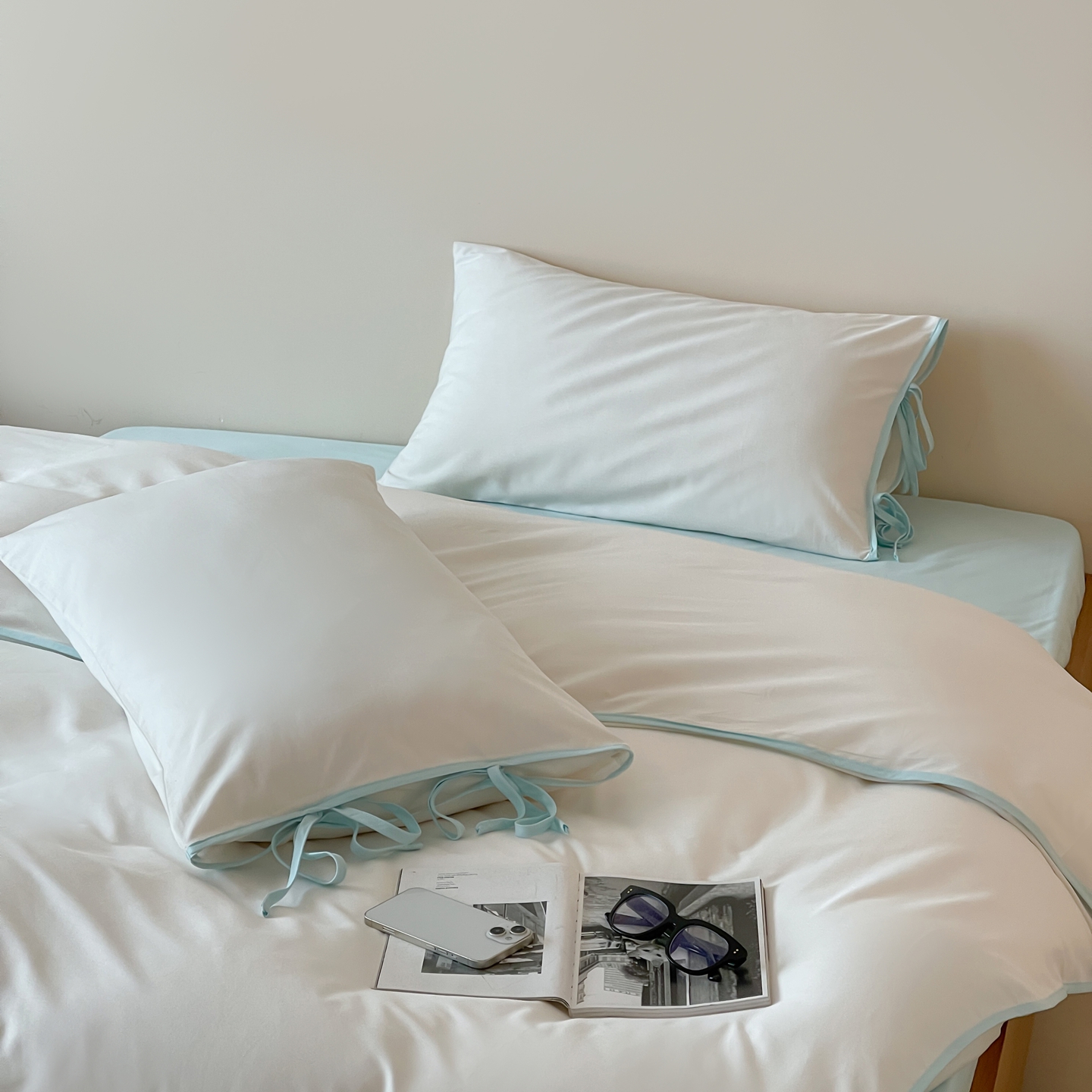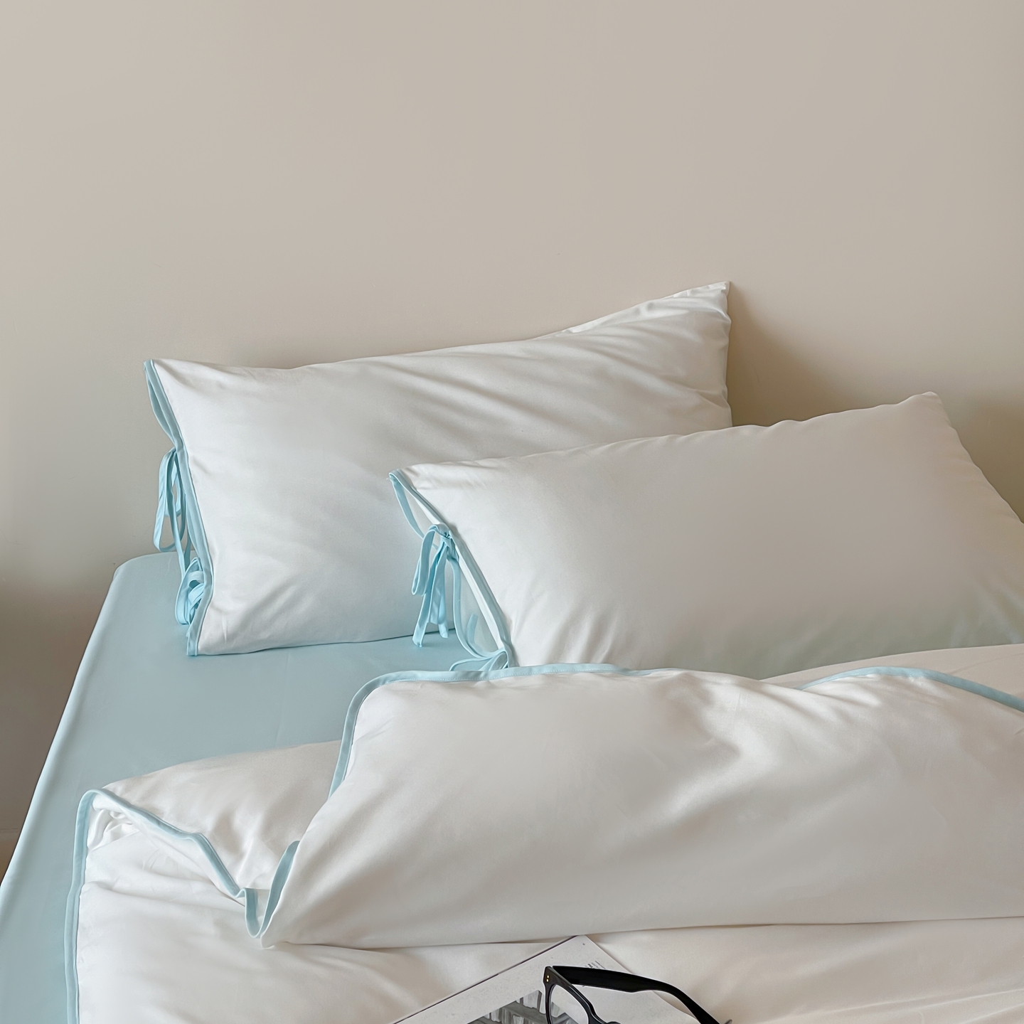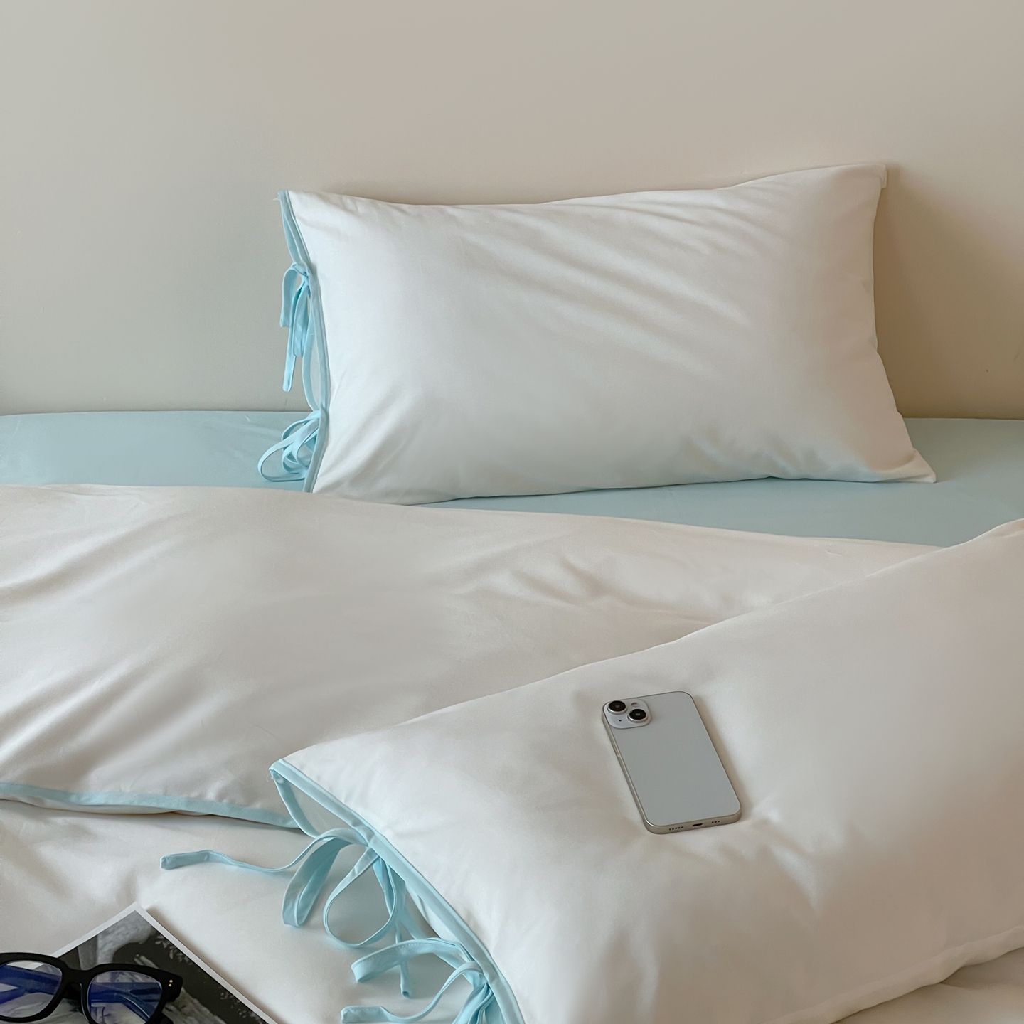 当前位置: 91家纺网 > 商品网购 > 床品套件 > 四件套 > 其它四件套 > 尺素 2025新款纯色纯棉简约韩式ins风四件套民宿风全棉被套棉床单双人被套加大床单1.8纯色床笠 初雪-水蓝