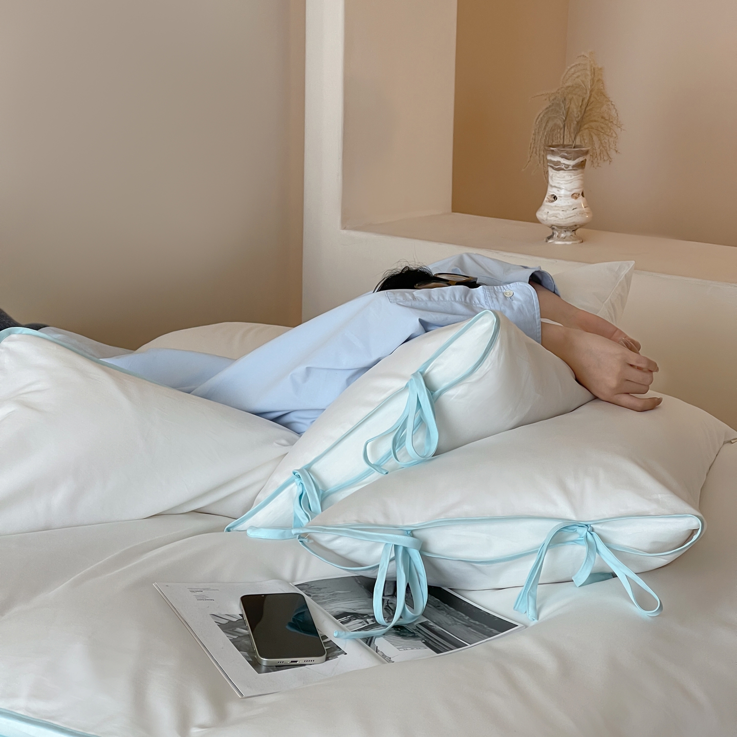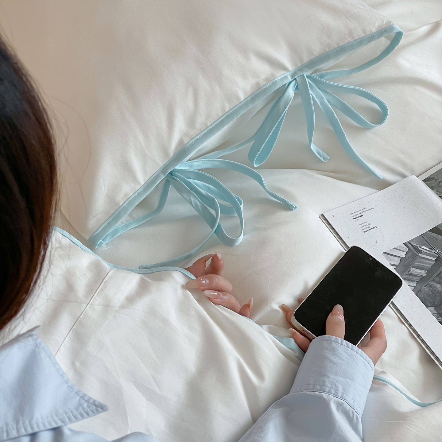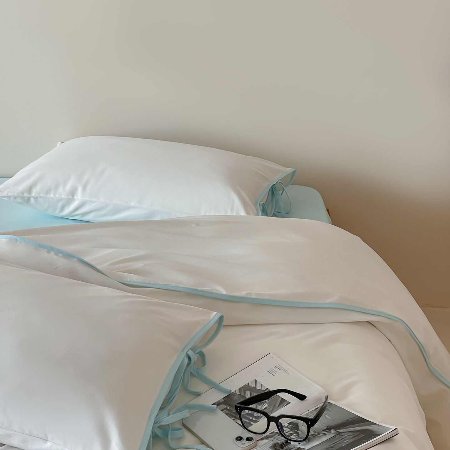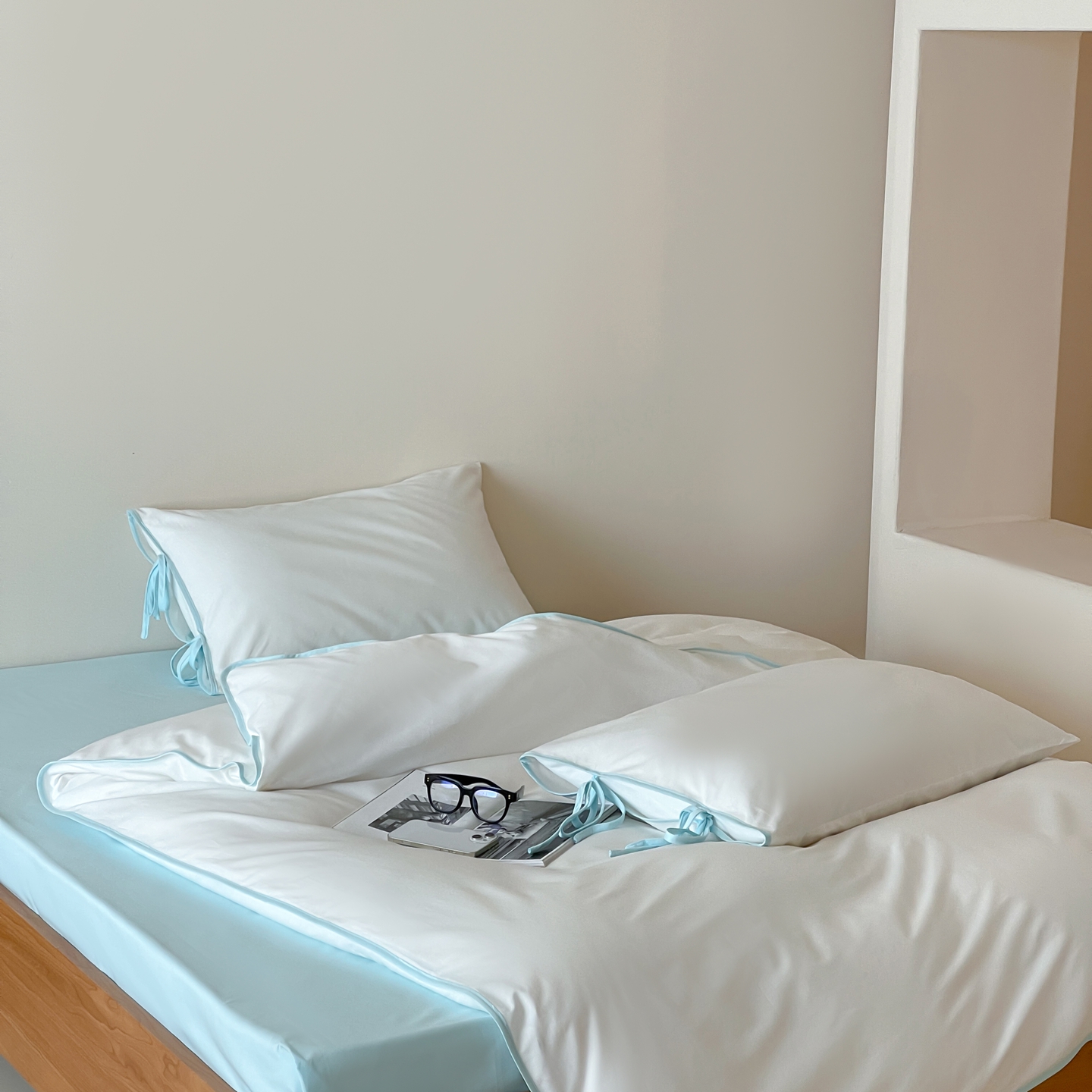 当前位置: 91家纺网 > 商品网购 > 床品套件 > 四件套 > 其它四件套 > 尺素 2025新款纯色纯棉简约韩式ins风四件套民宿风全棉被套棉床单双人被套加大床单1.8纯色床笠 初雪-水蓝