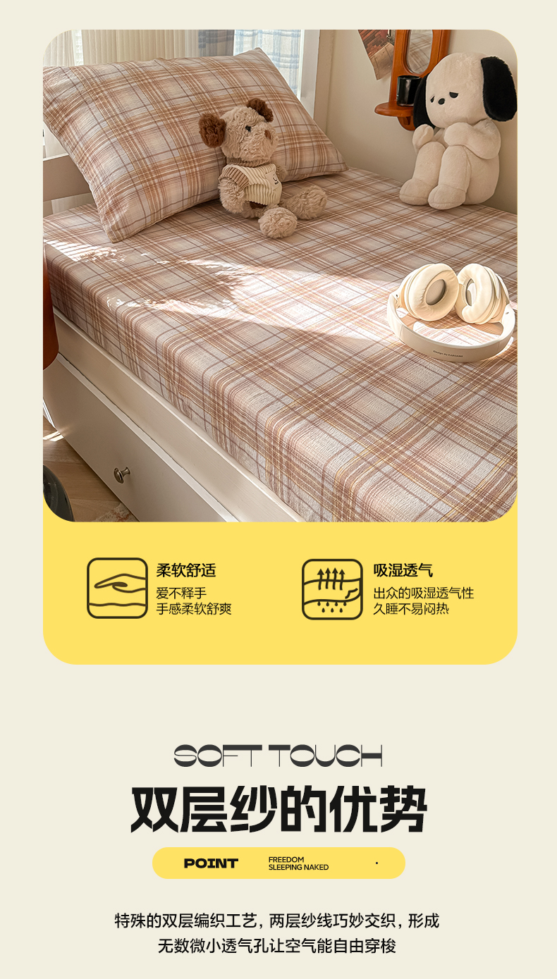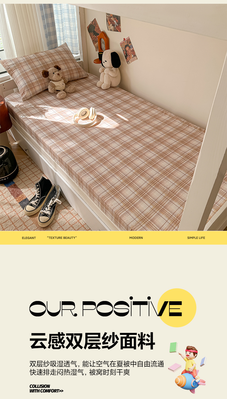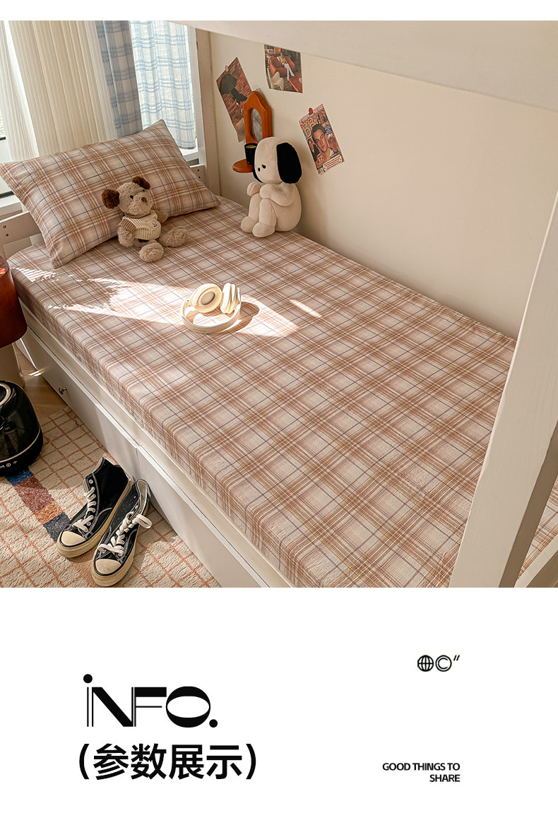 • 91家纺网 家纺一手货源 找家纺 韩巢家纺 2025新款上下铺双层纱学生宿舍寝室格子复古风床笠单件高低床防滑床单床套 鹿灵