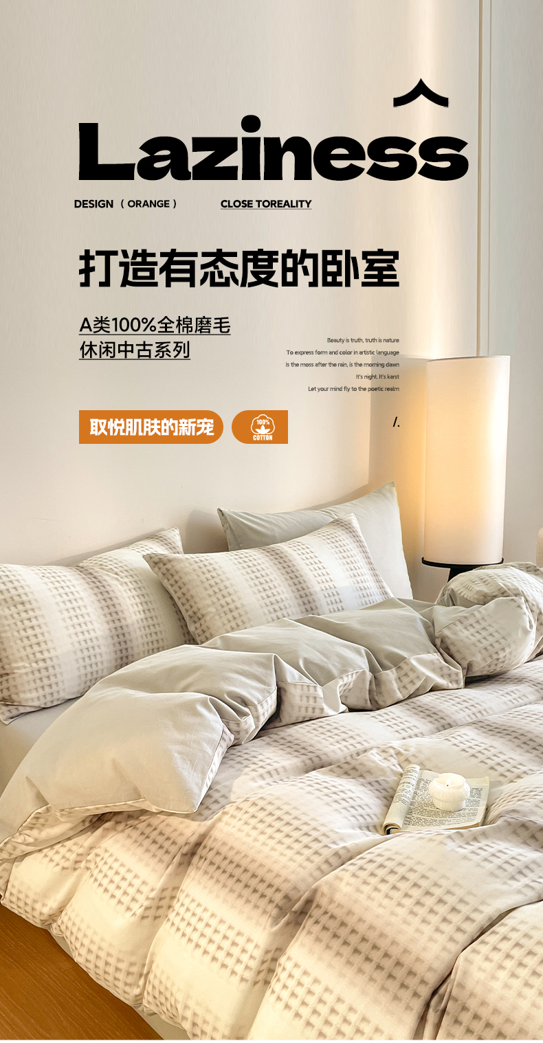 当前位置: 91家纺网 > 商品网购 > 床品套件 > 四件套 > 全棉普通四件套 > 莱登卡奴 2025新款A类100%全棉磨毛休闲中古系列四件套 克洛伊-灰