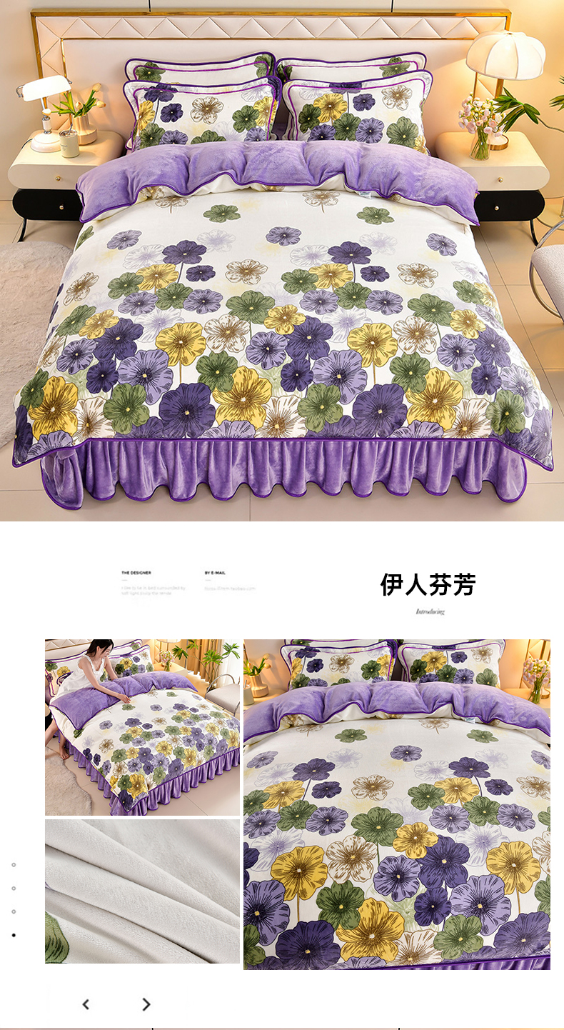 商品名称:馨梦缘 2025直播爆款8.5斤牛奶绒四件套加厚保暖床裙金貂绒 伊人芬芳