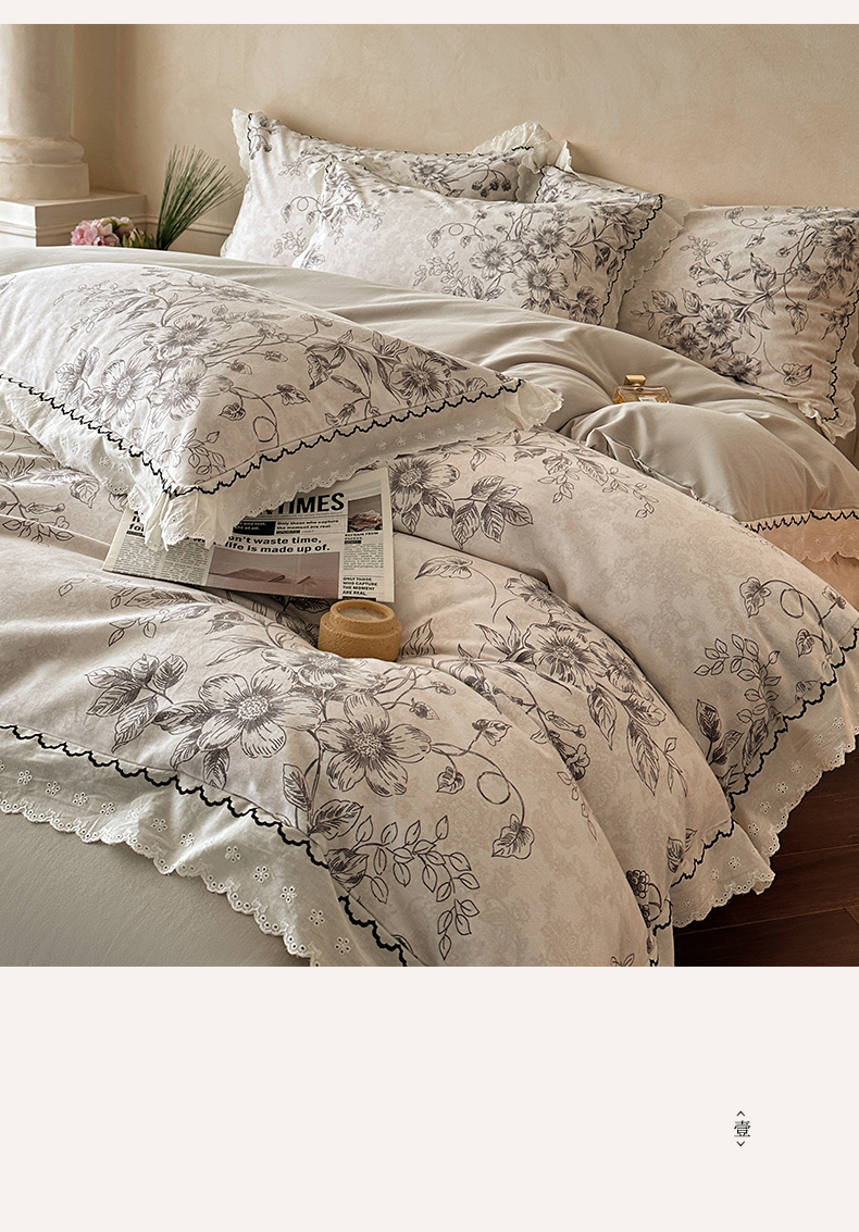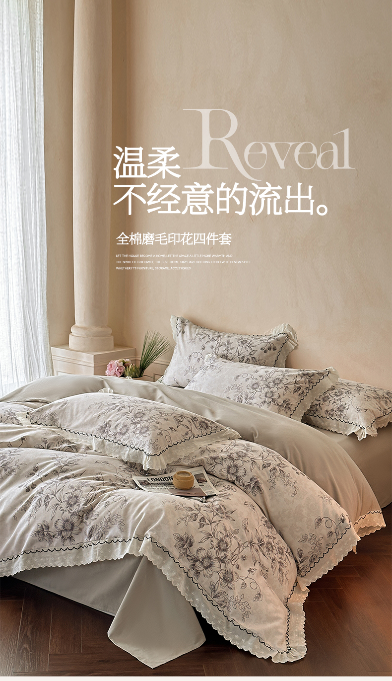 当前位置: 91家纺网 > 商品网购 > 床品套件 > 四件套 > 磨毛活性四件套 > 涵宸家纺 2025新款全棉磨毛印花四件套-雅漾 花禧