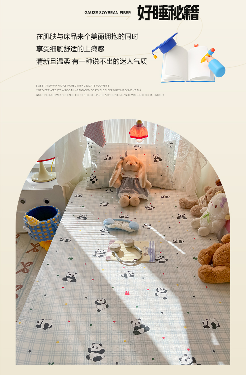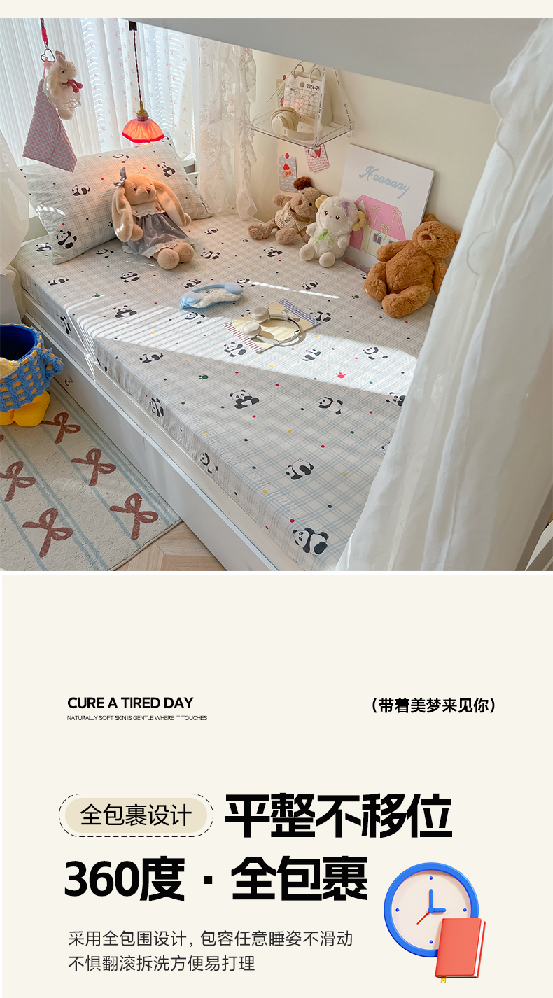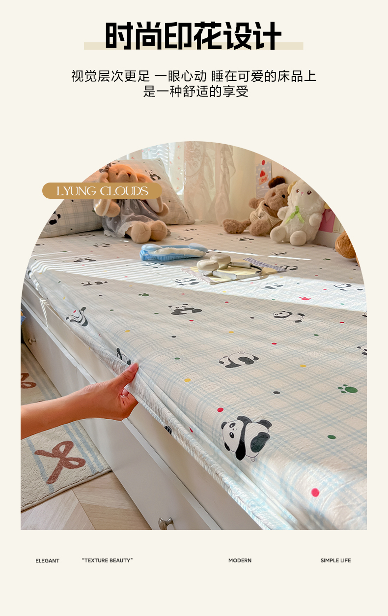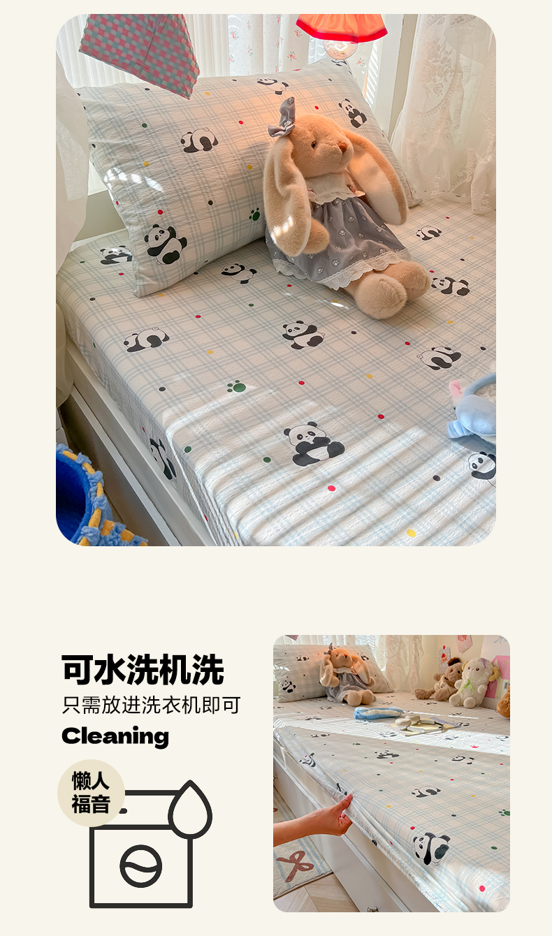 • 91家纺网 家纺一手货源 找家纺 韩巢家纺 2025新款A类学生宿舍上下铺床笠单件床垫保护罩枕套三件套 软软熊猫