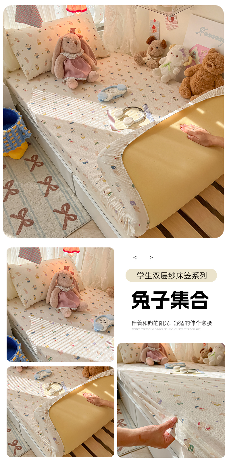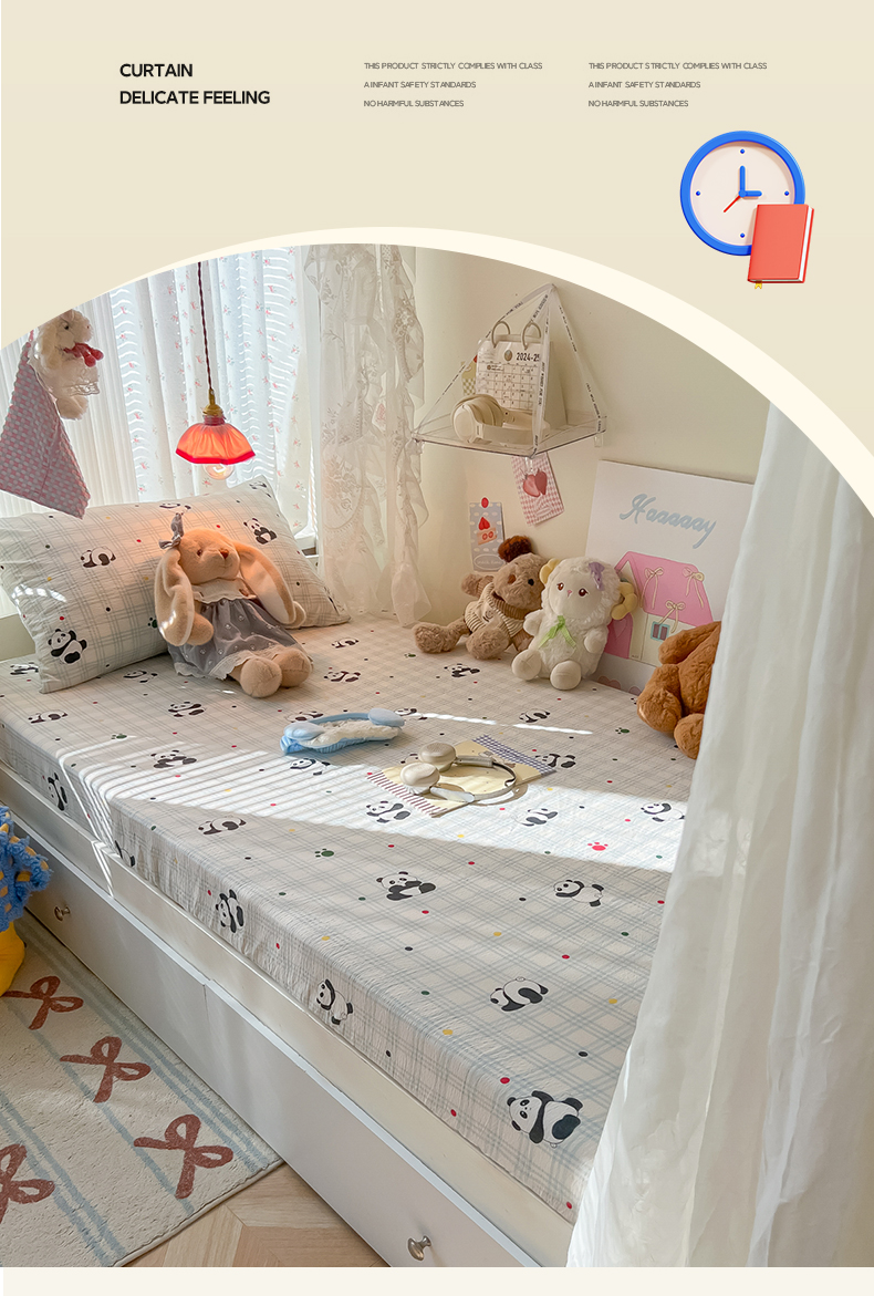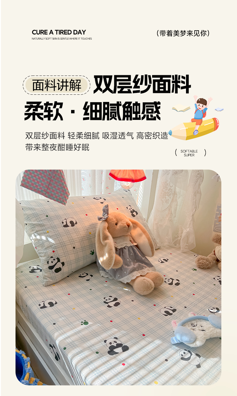 • 91家纺网 家纺一手货源 找家纺 韩巢家纺 2025新款A类学生宿舍上下铺床笠单件床垫保护罩枕套三件套 软软熊猫