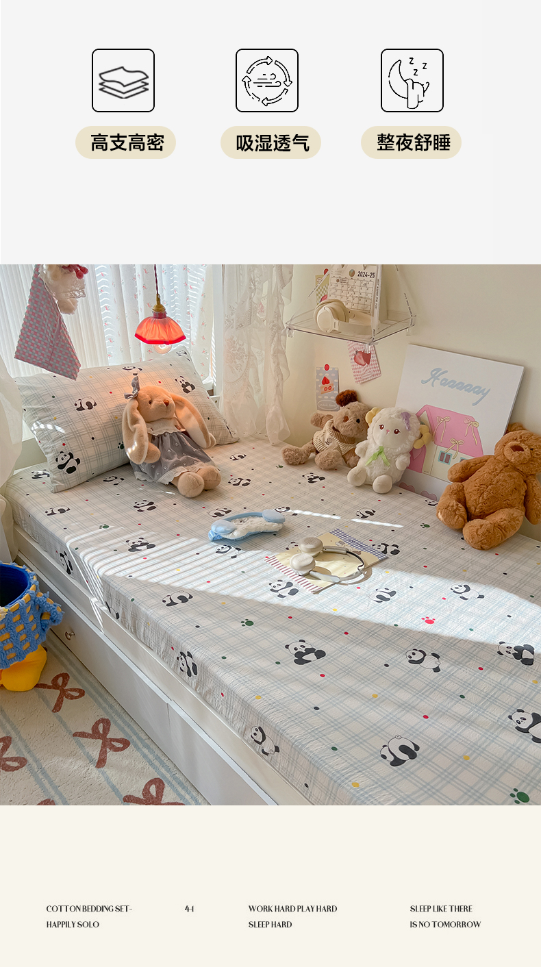 韩巢家纺 2025新款A类学生宿舍上下铺床笠单件床垫保护罩枕套三件套 软软熊猫