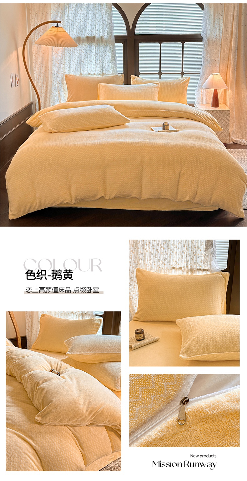 (总)蓝极人 2025新款色织阳离子提花牛奶绒四件套,色织-米杏,色织-鹅黄,色织-浅紫,色织-桃粉,色织-芽绿,色织-银灰,色织-云蓝