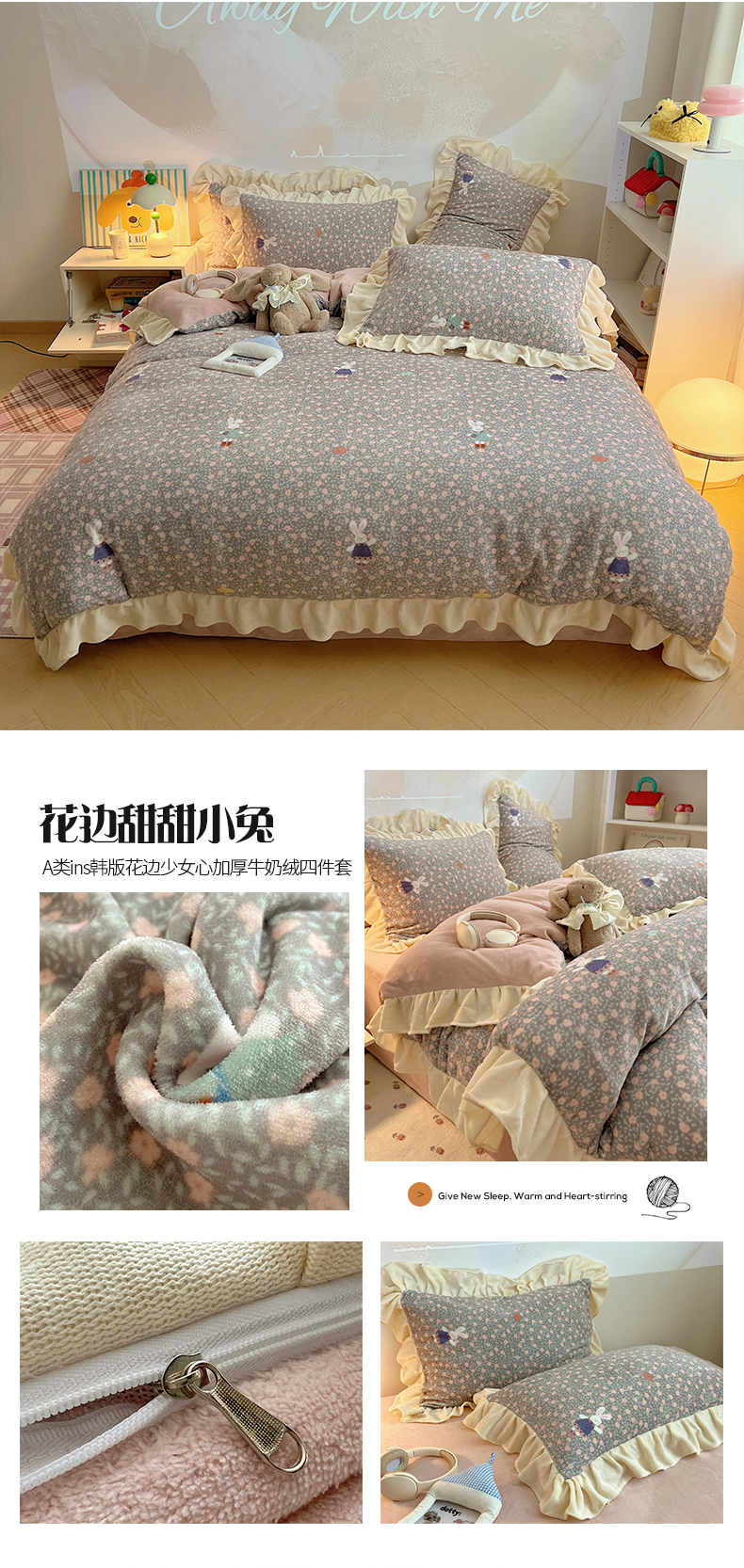 当前位置: 91家纺网 > 商品网购 > 床品套件 > 四件套 > 牛奶绒四件套 > 桃子家居 2025新款A类ins韩版花边少女心可爱卡通碎花加厚牛奶绒四件套 绒-花边奶油蝴蝶结蓝