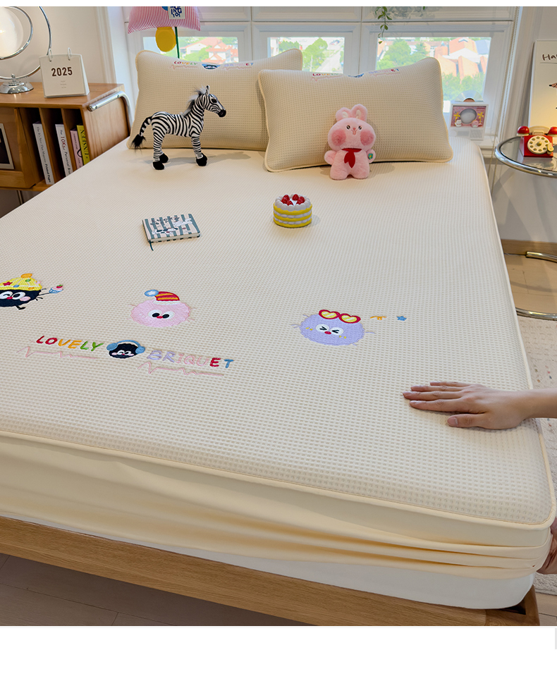 莱家富 2025新款A类华夫格夹棉床笠单品床笠单件床笠套件 萌兔蒂-樱雾粉