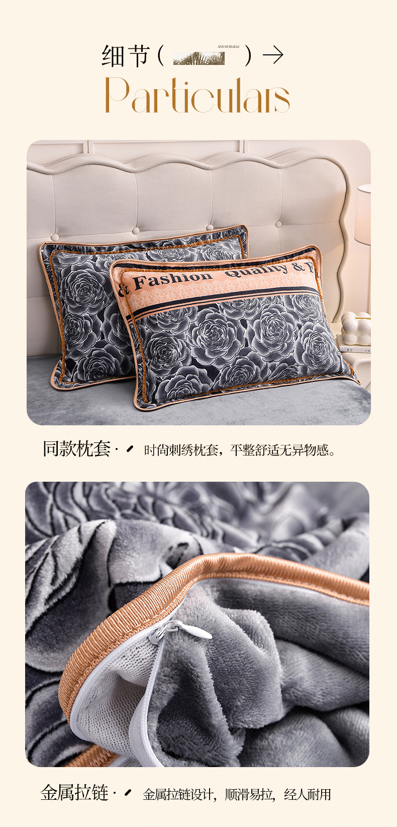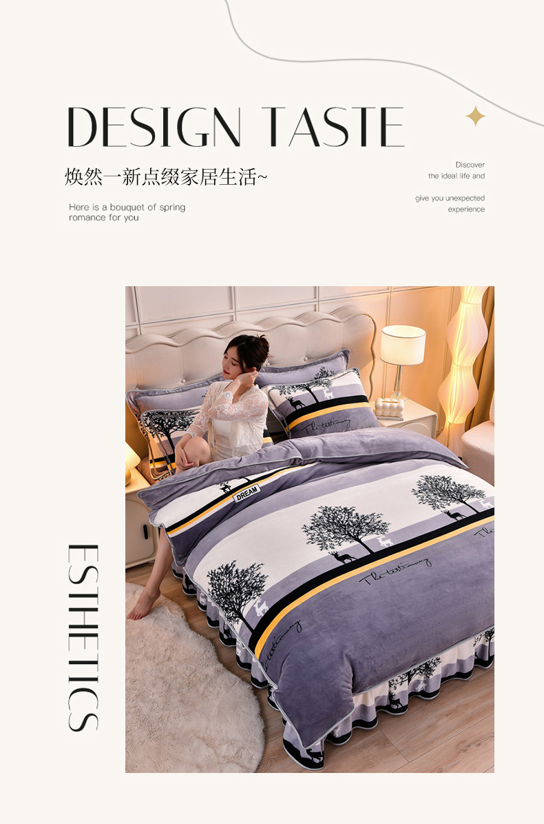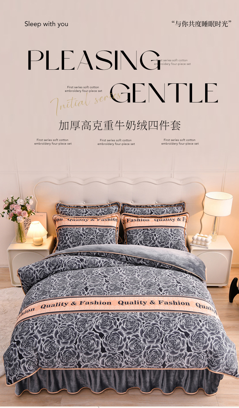 当前位置: 91家纺网 > 商品网购 > 床品套件 > 四件套 > 牛奶绒四件套 > 绒宴 2025新款8.5斤牛奶绒金貂法莱绒床裙款保暖四件套 流金岁月