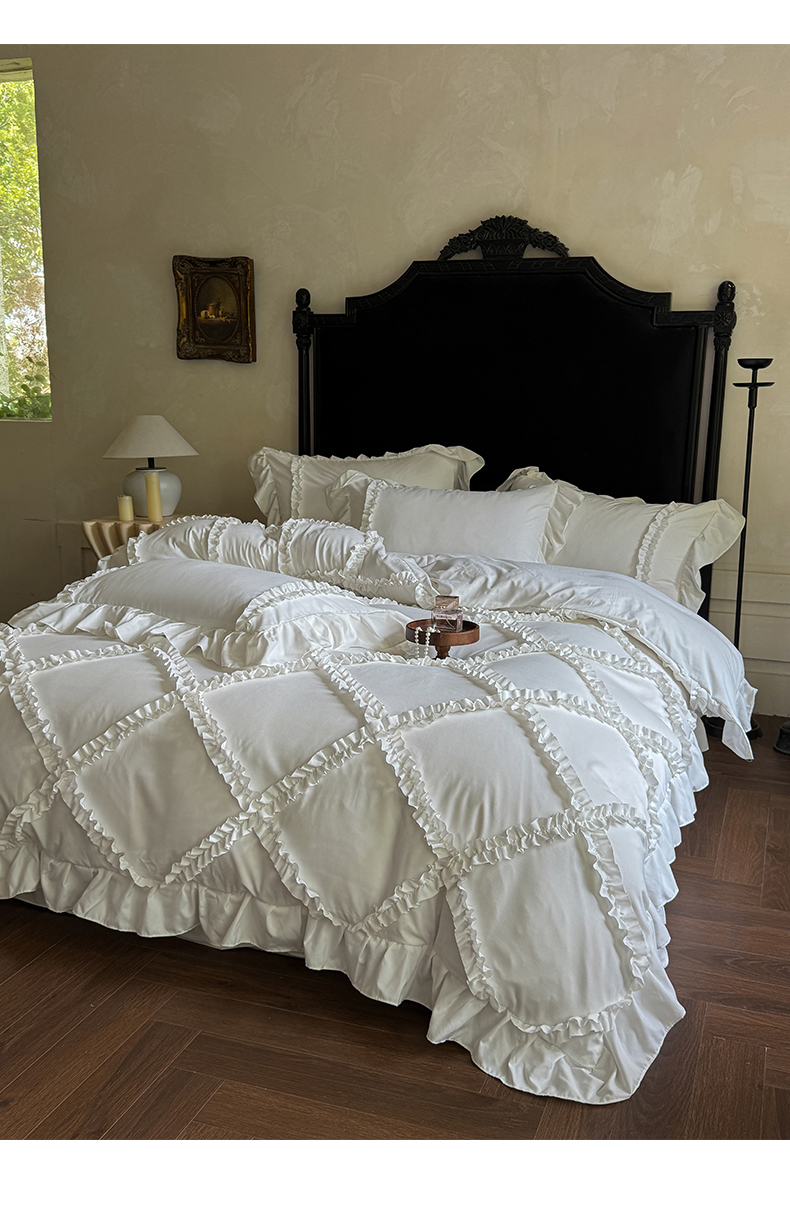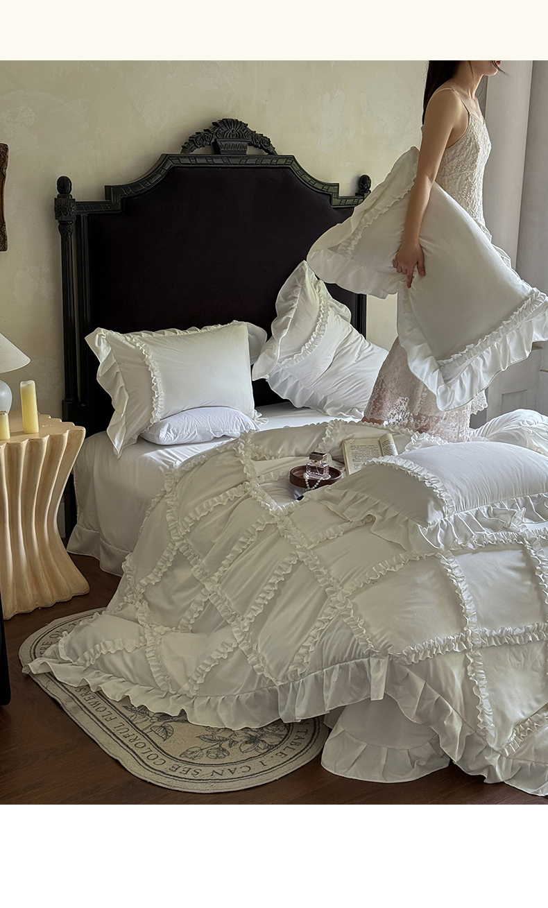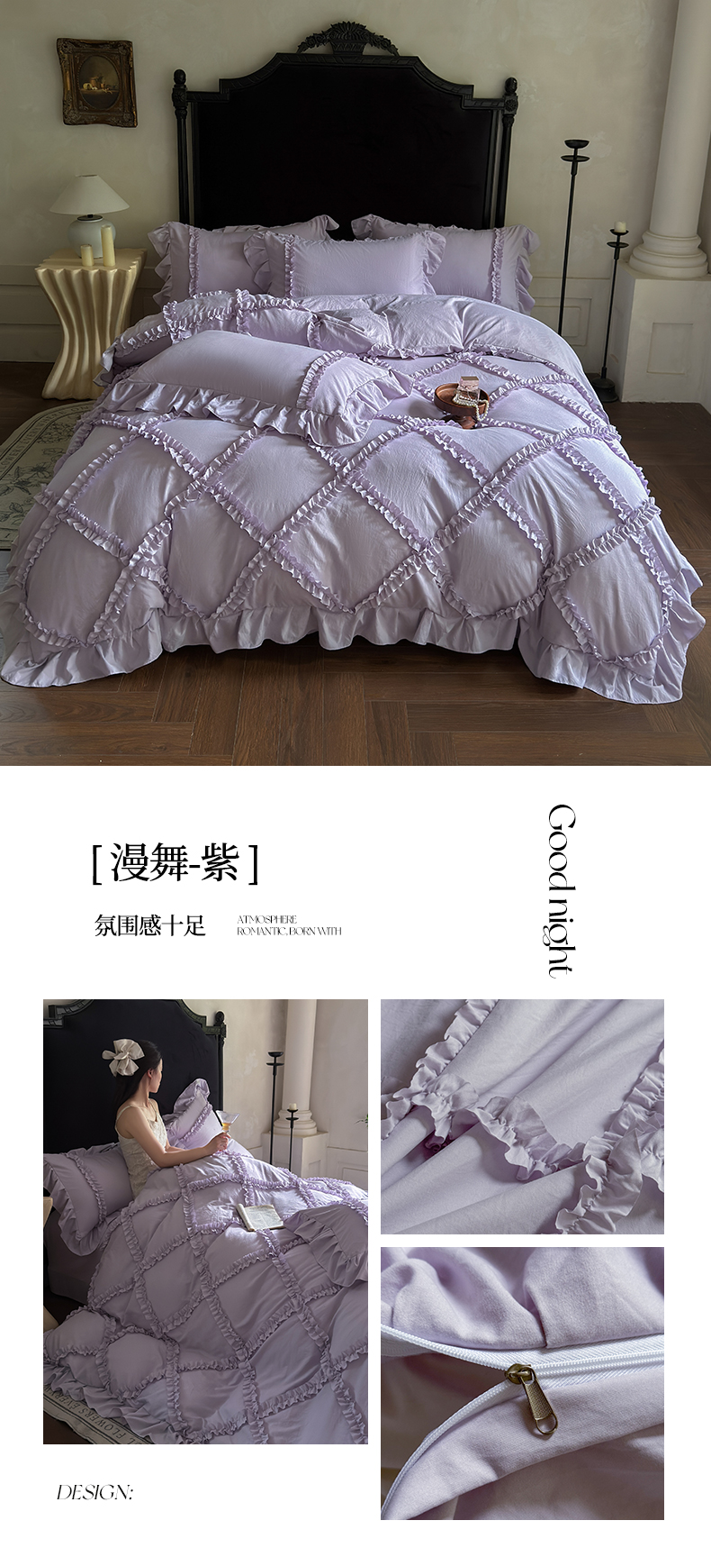 (总)豪美鑫 2025新款超柔水洗棉花边四件套-克拉拉系列,克拉拉--纯白,克拉拉--果绿,克拉拉--米黄,克拉拉-嫩粉,克拉拉--香芋紫