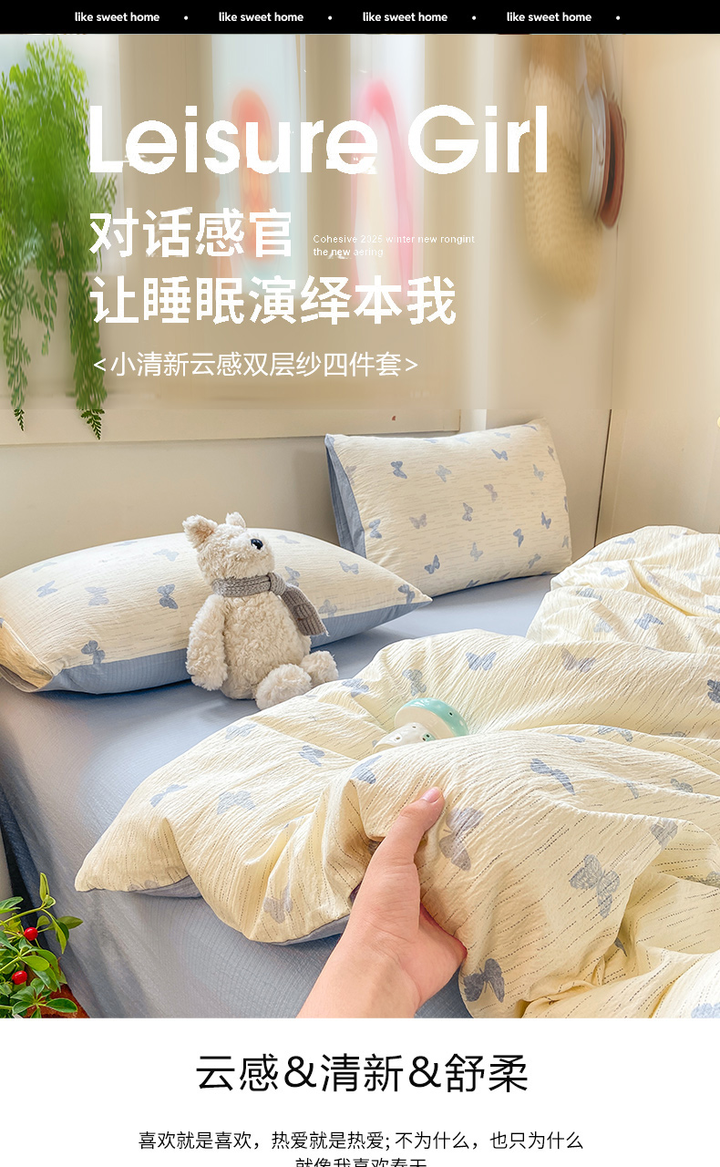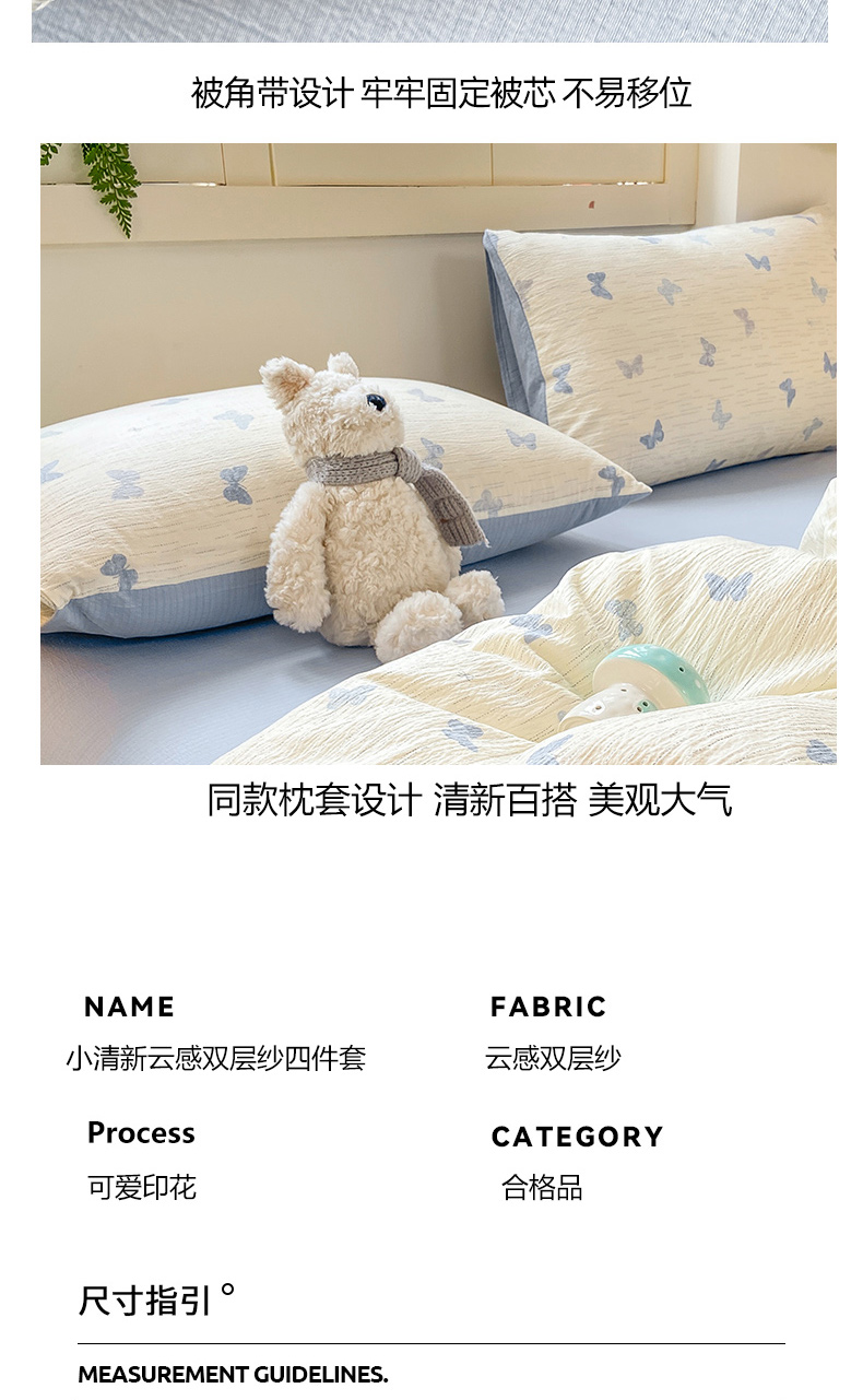 当前位置: 91家纺网 > 商品网购 > 床品套件 > 四件套 > 双层纱四件套 > 夜笙家纺 2025秋冬网红爆款110克水洗棉高克重皱皱纱(提供买家秀) 兰黛