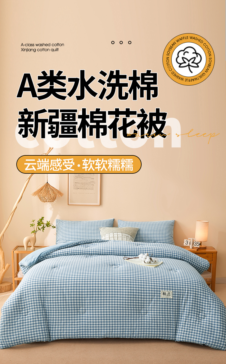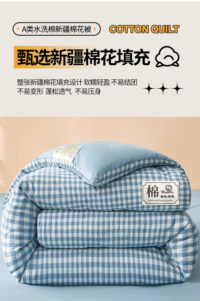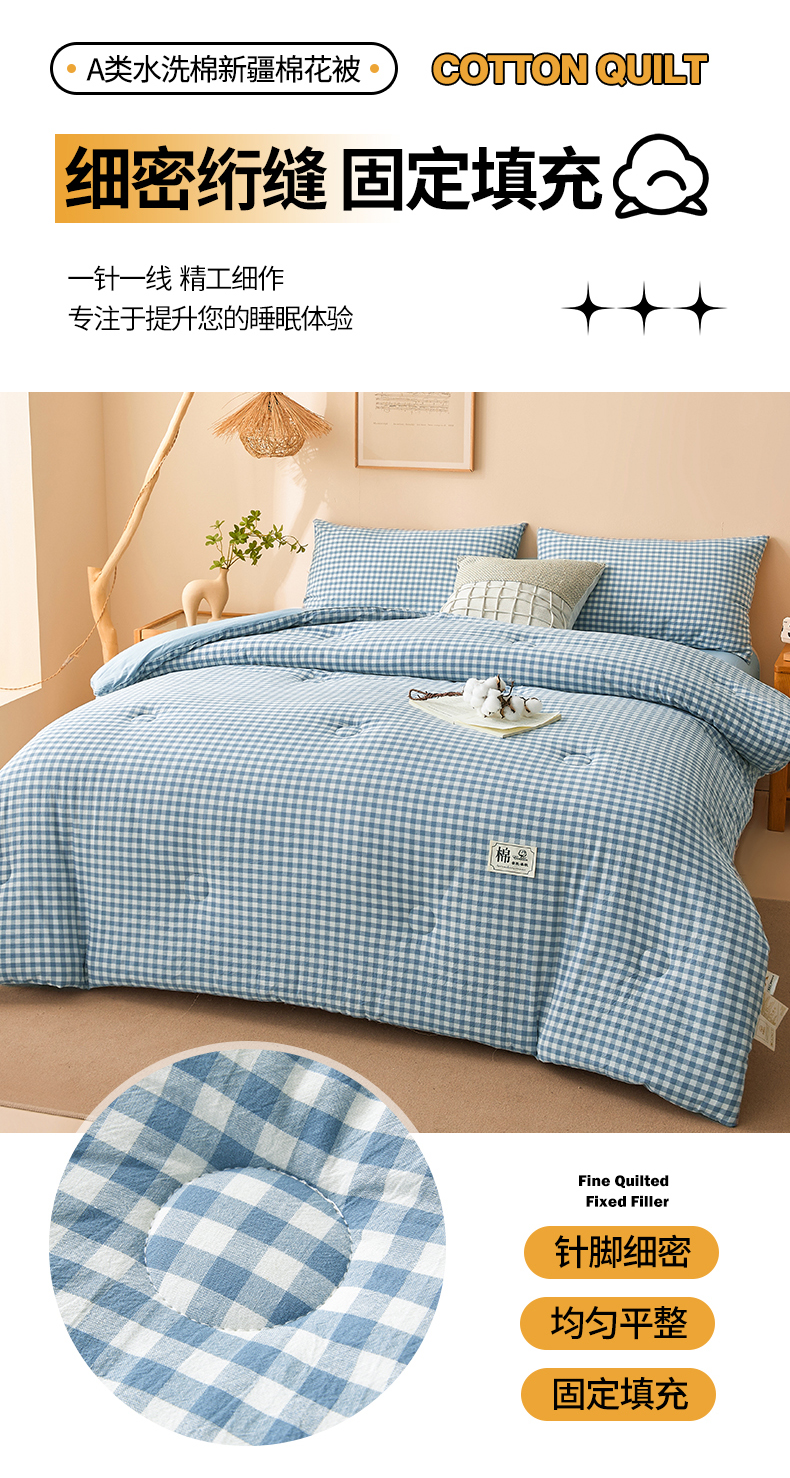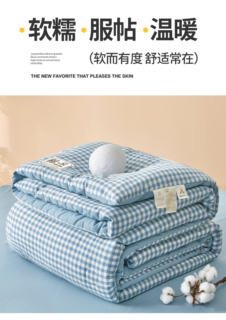 • 91家纺网 家纺一手货源 找家纺 晓时候 2025新款A类水洗棉冬被新疆棉花被夏被春秋被四季被子被芯 浅蓝小格