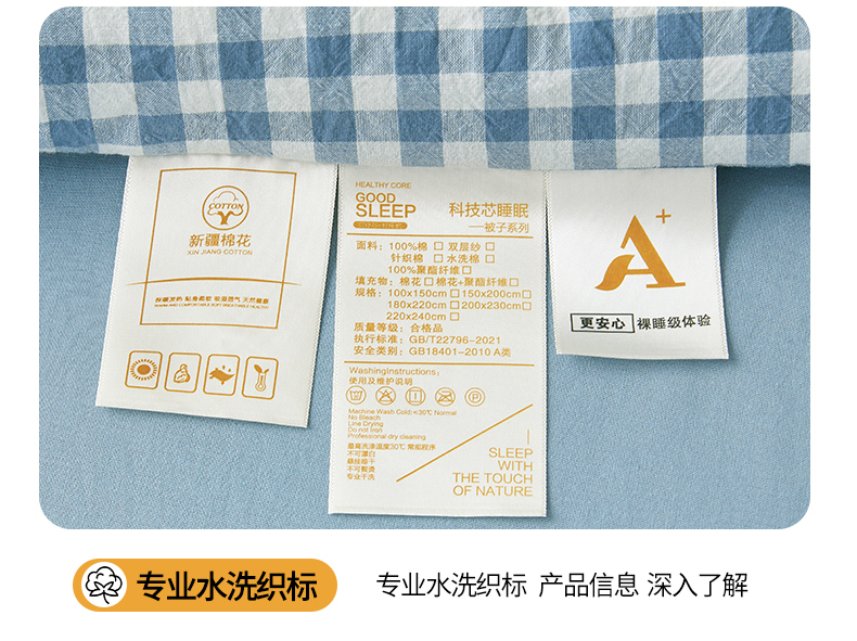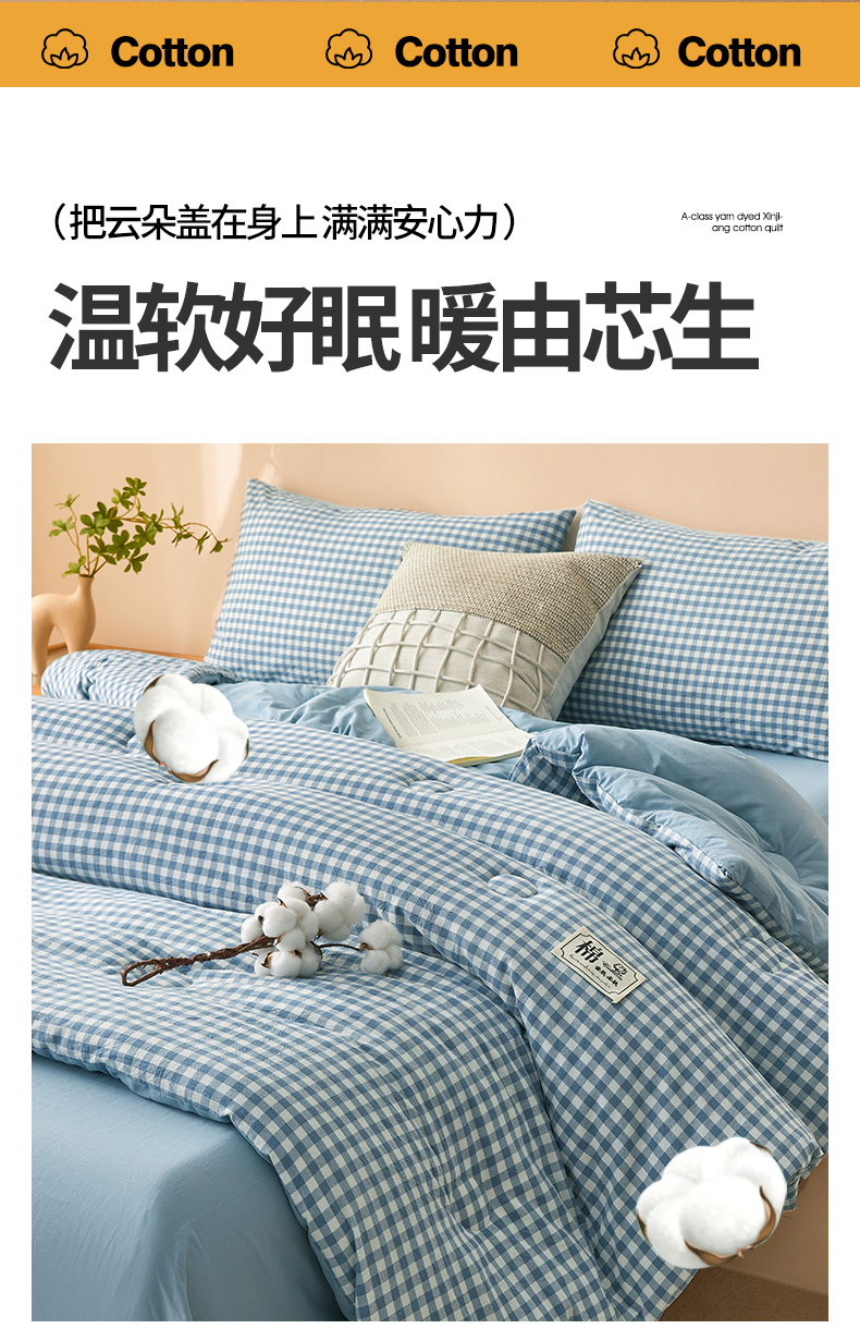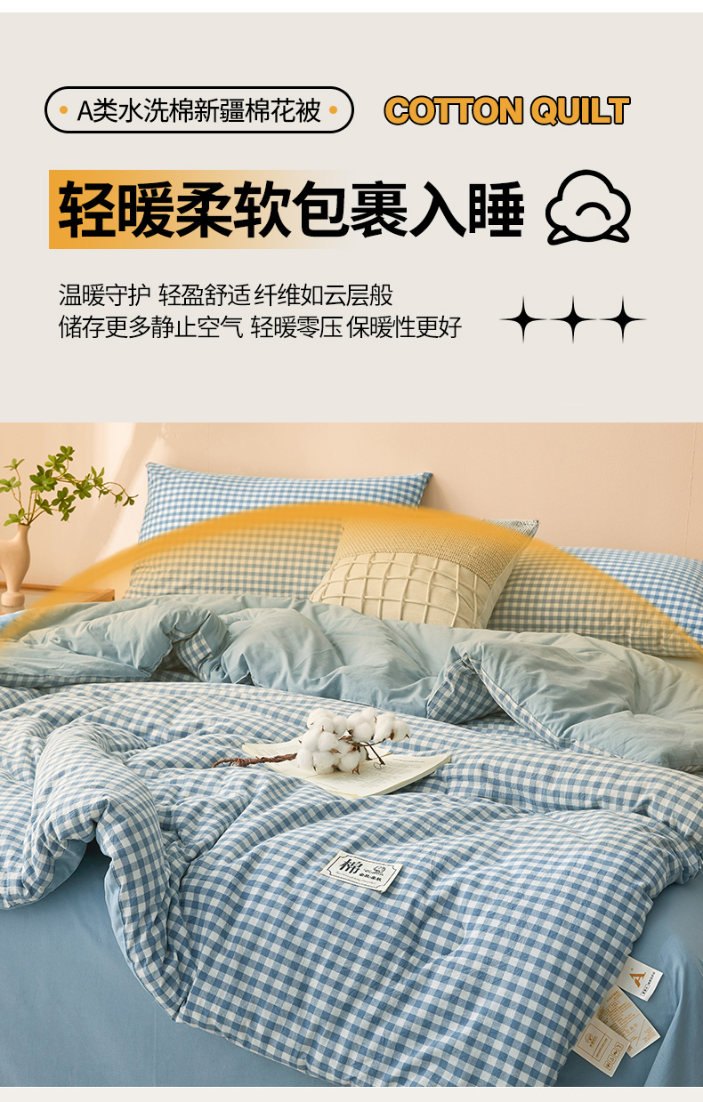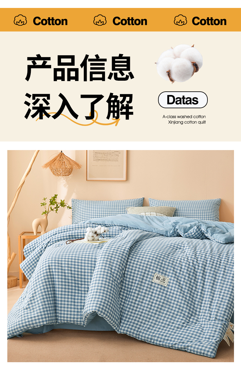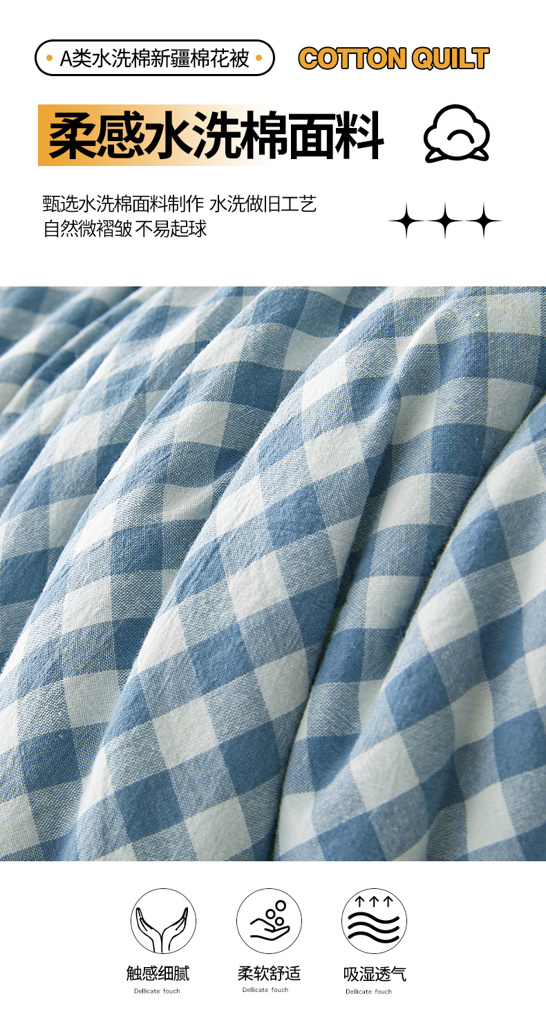 • 91家纺网 家纺一手货源 找家纺 晓时候 2025新款A类水洗棉冬被新疆棉花被夏被春秋被四季被子被芯 浅蓝小格