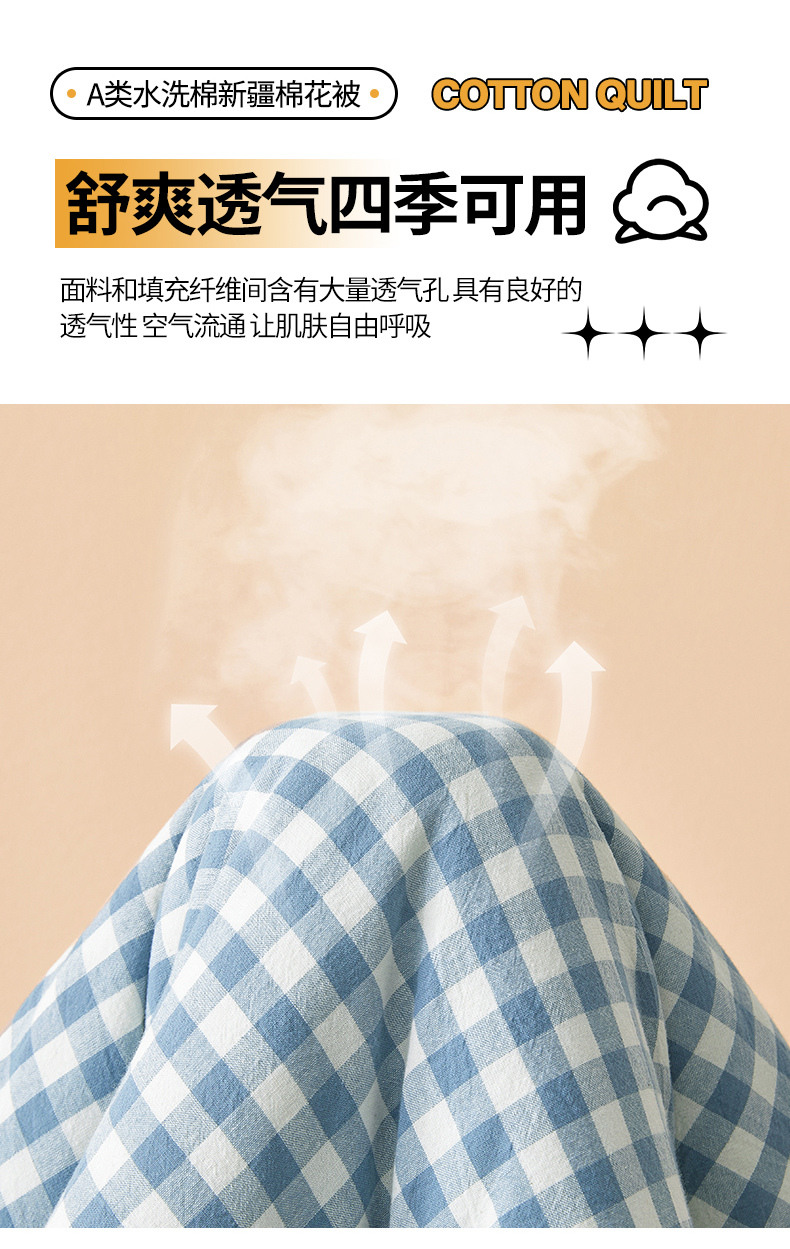(总)晓时候 2025新款A类水洗棉冬被新疆棉花被夏被春秋被四季被子被芯,海蓝格,光年绿,可可灰,莫奈蓝,莫妮蓝,浅蓝小格,韶华桔,条纹灰,炫彩粉,玉粉格