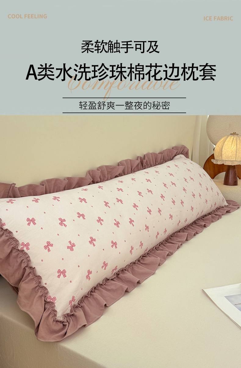 商品名称:圣比熊 2025新款水洗珍珠棉花边枕套加长双人情侣1.8米枕芯内胆套1.5m枕头套 怦然心动