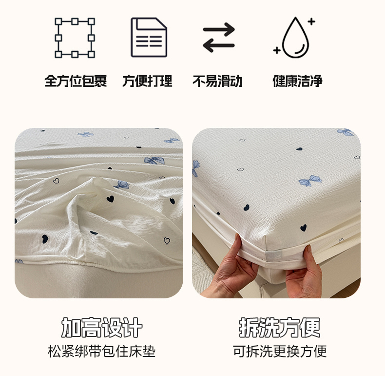叠派家纺 2025新款A类双层纱提花单品床笠系列 爱心蝴蝶结