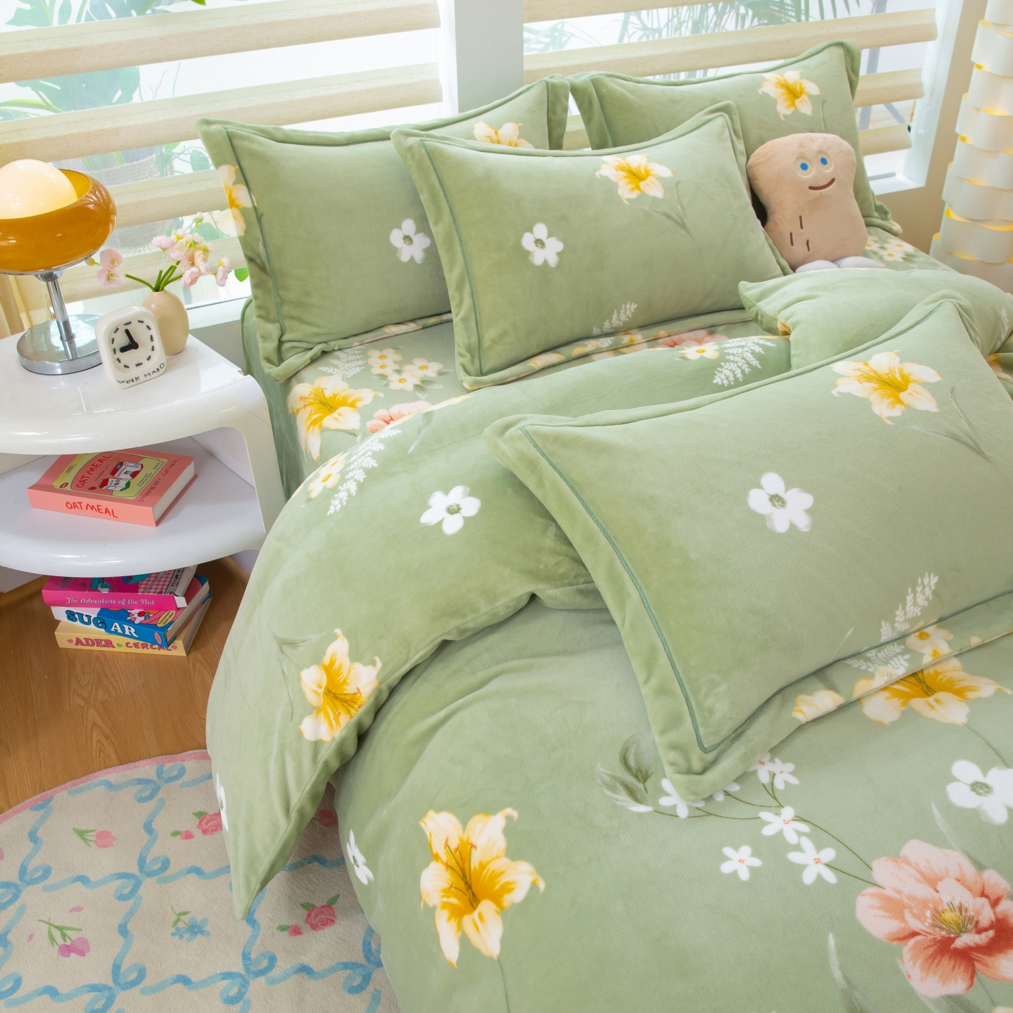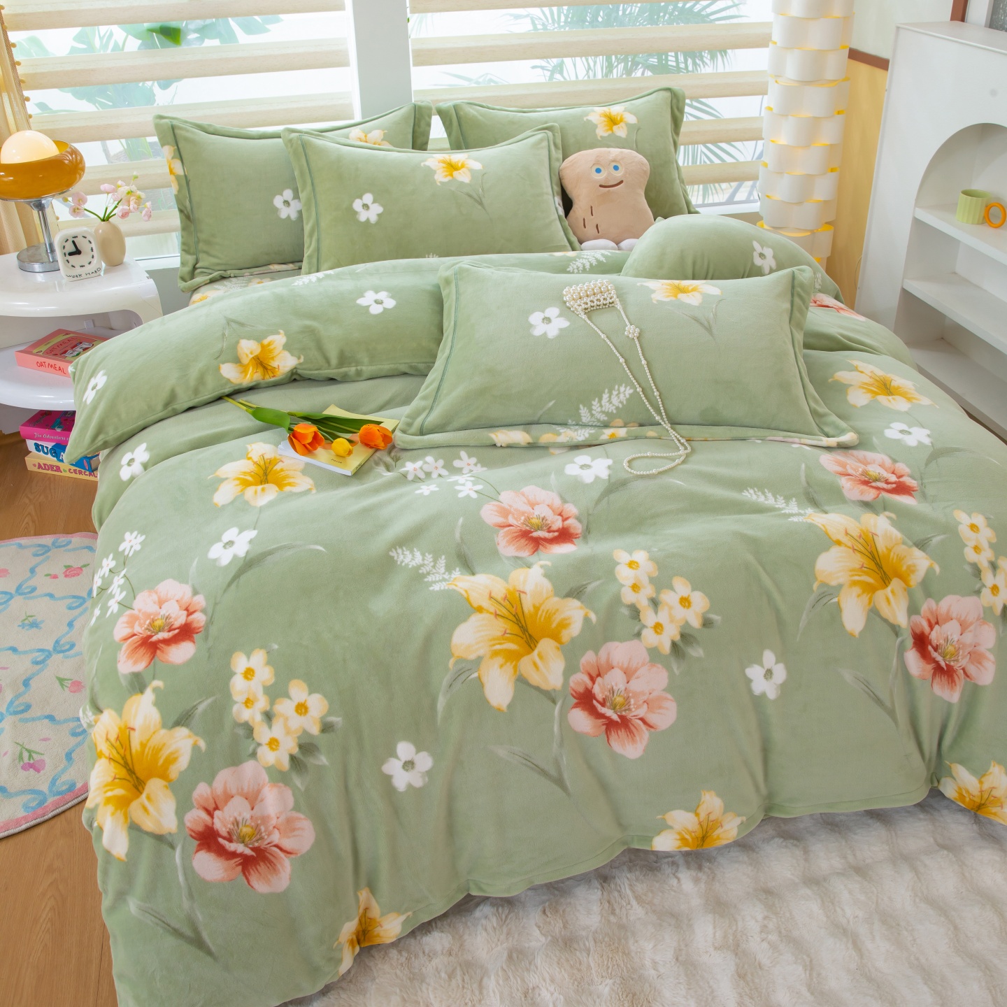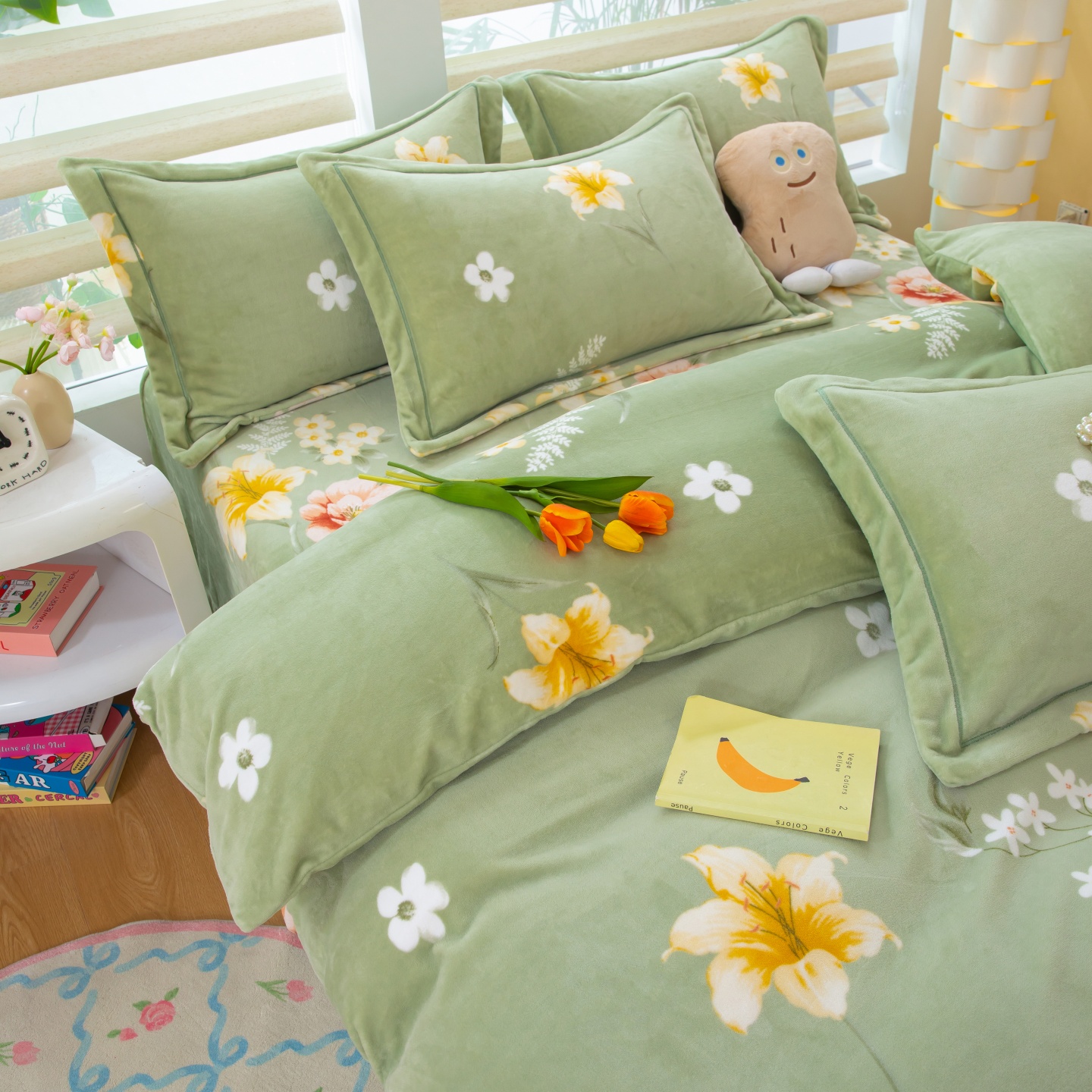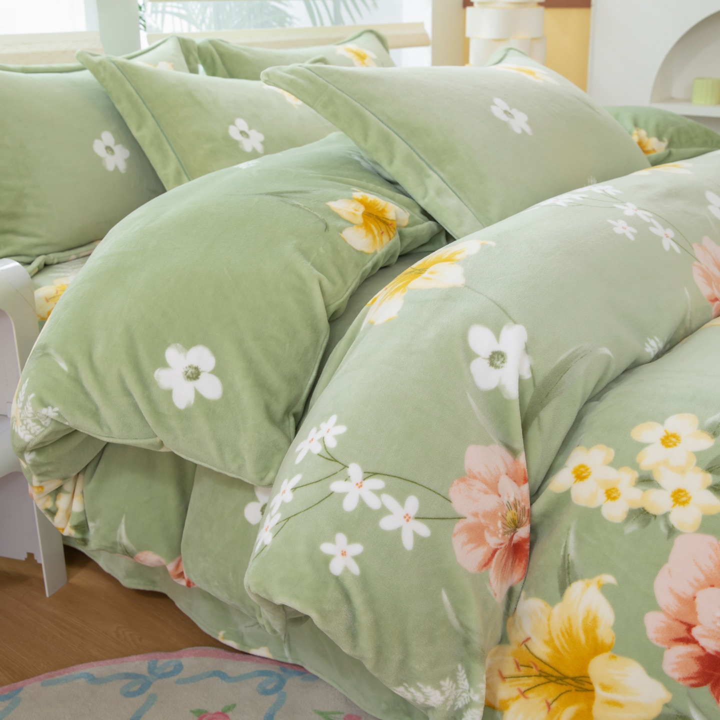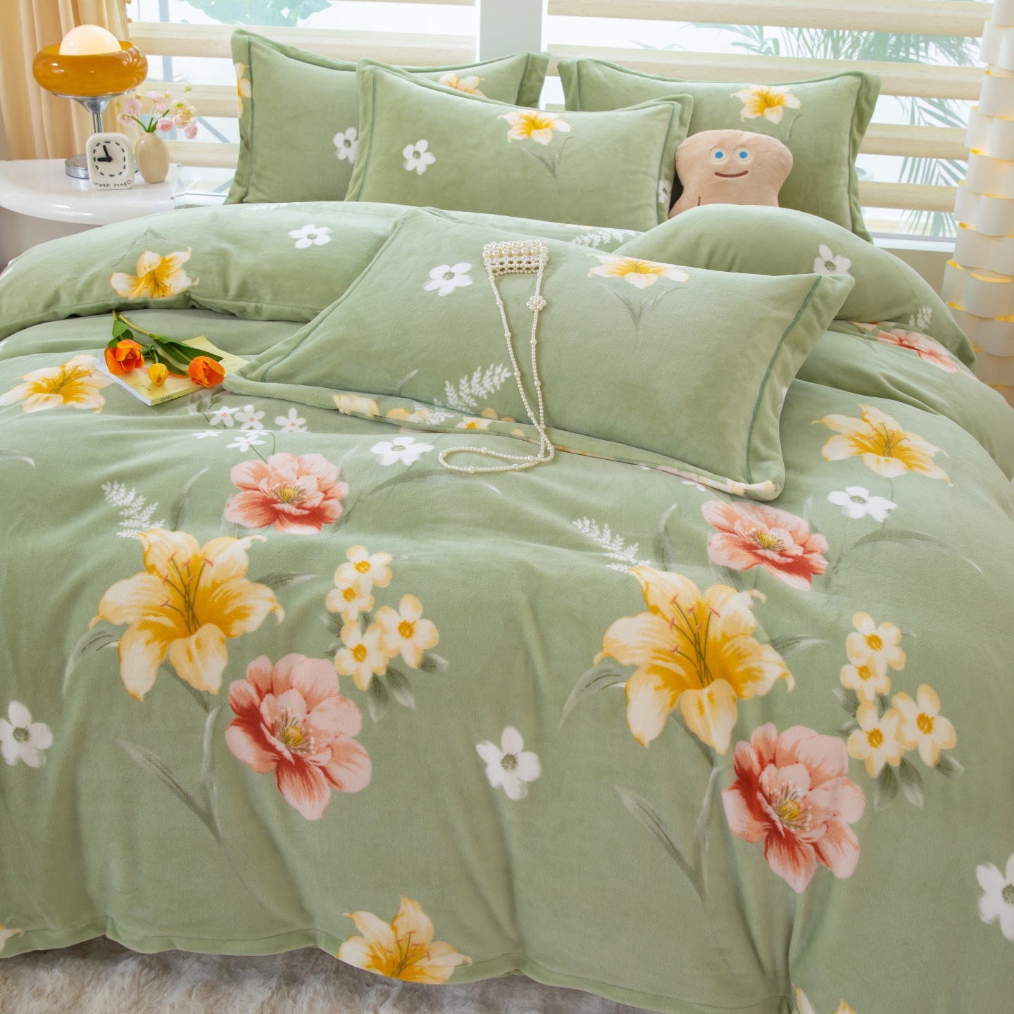 优姿家纺 2025新款加厚全消光牛奶绒印花四件套 四季繁华