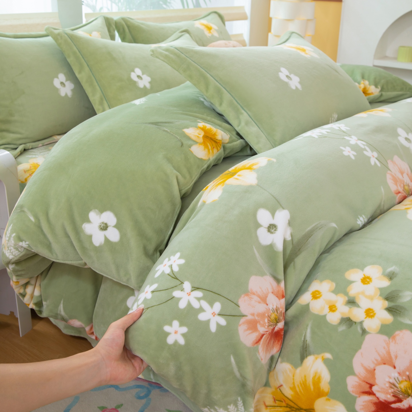 商品名称:优姿家纺 2025新款加厚全消光牛奶绒印花四件套 四季繁华