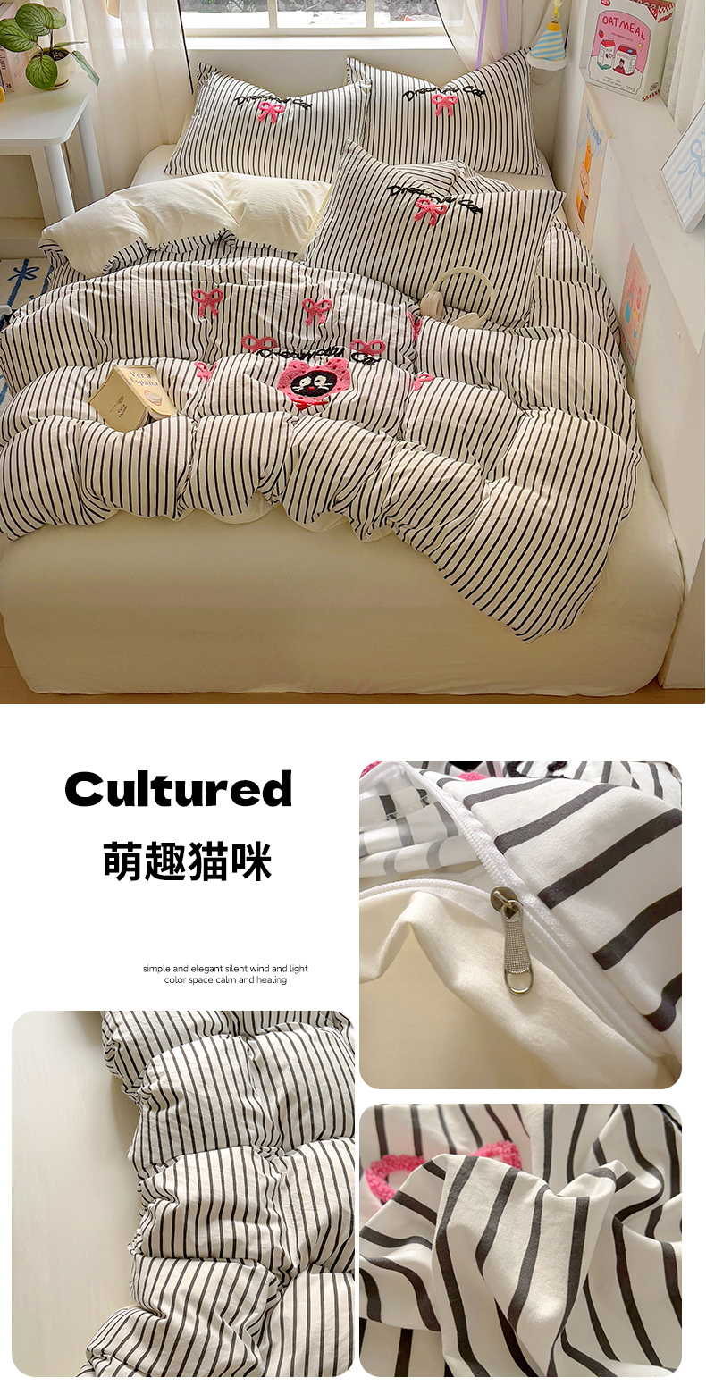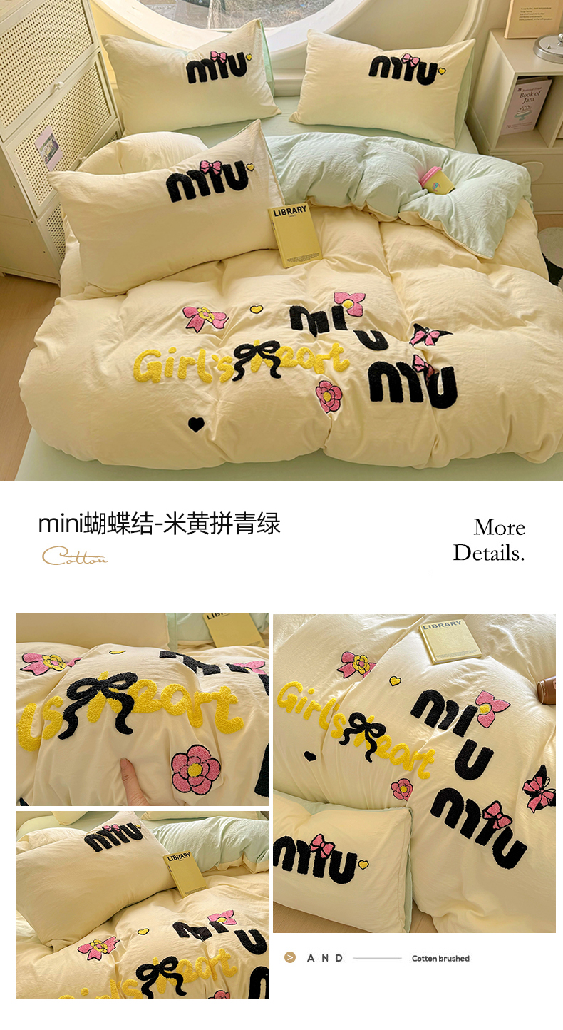 当前位置: 91家纺网 > 商品网购 > 床品套件 > 四件套 > 水洗棉四件套 > 韩秀家纺 2025新款水洗棉毛巾绣云朵棉四件套 mini蝴蝶结-米加灰