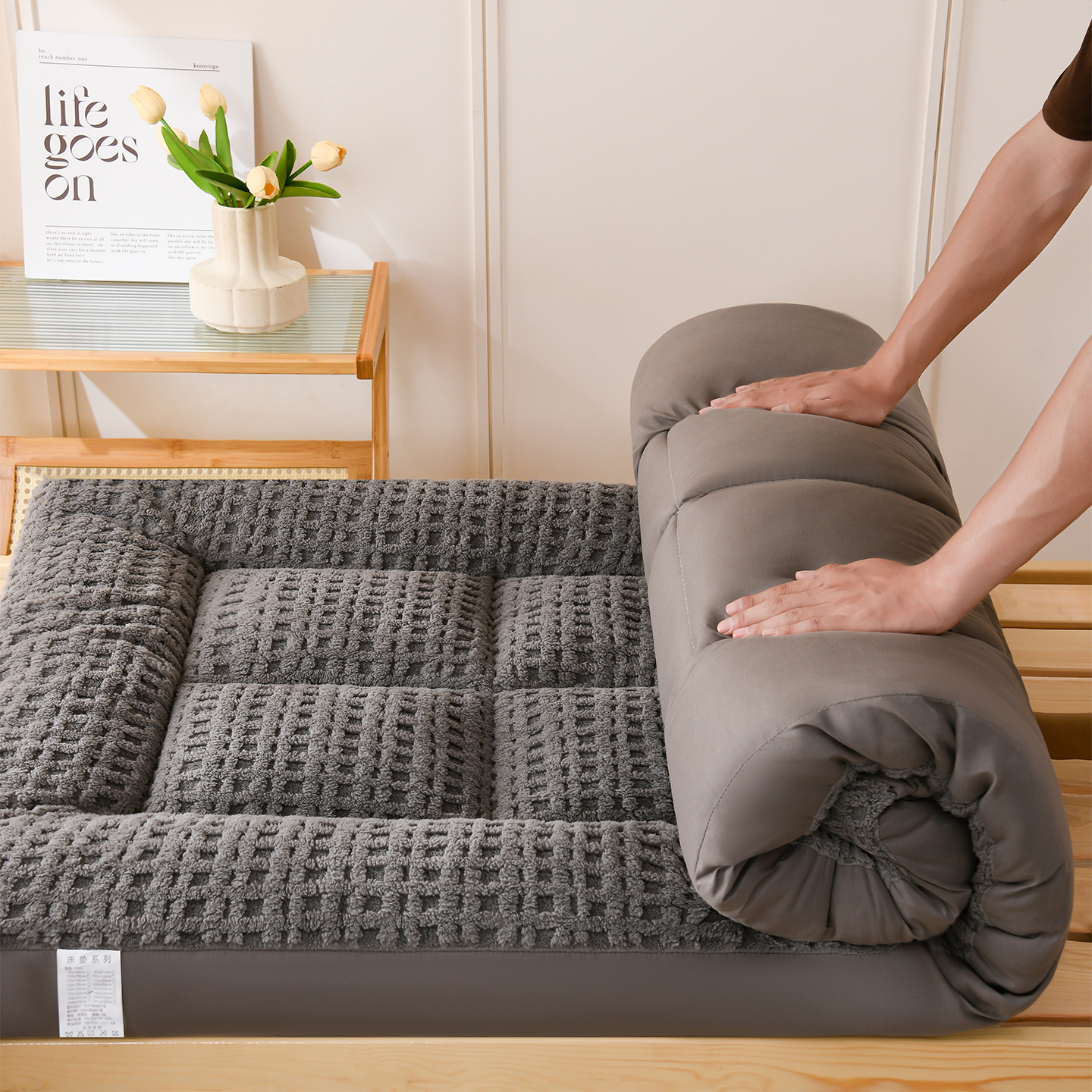 商品名称:预言家纺 2025新款A类提花牛奶绒塔芙绒床垫跨境 方格深灰