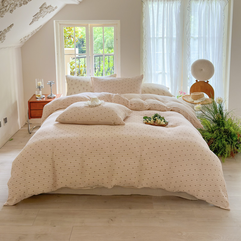 木楌 2025新款全棉A类皱皱纱印花四件套 春泥,春泥