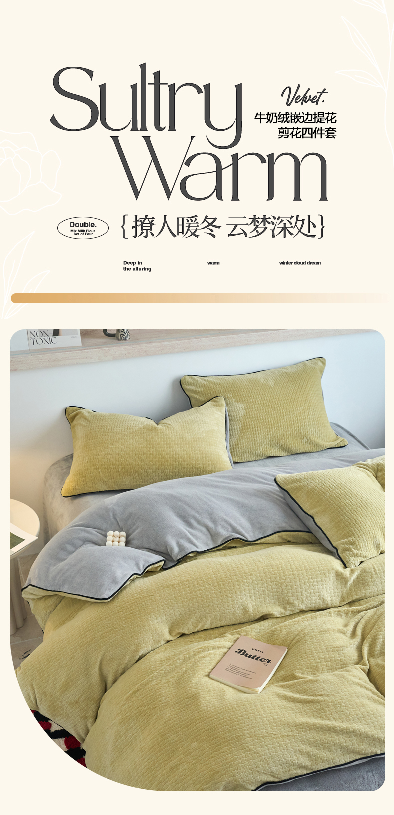 当前位置: 91家纺网 > 商品网购 > 床品套件 > 四件套 > 牛奶绒四件套 > 兰紫橙家纺 2025新款牛奶绒嵌边提花剪花四件套(含买家秀) 心链-奶油黄