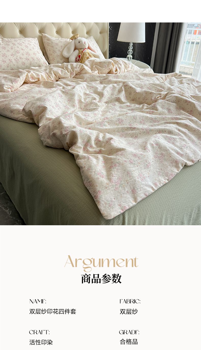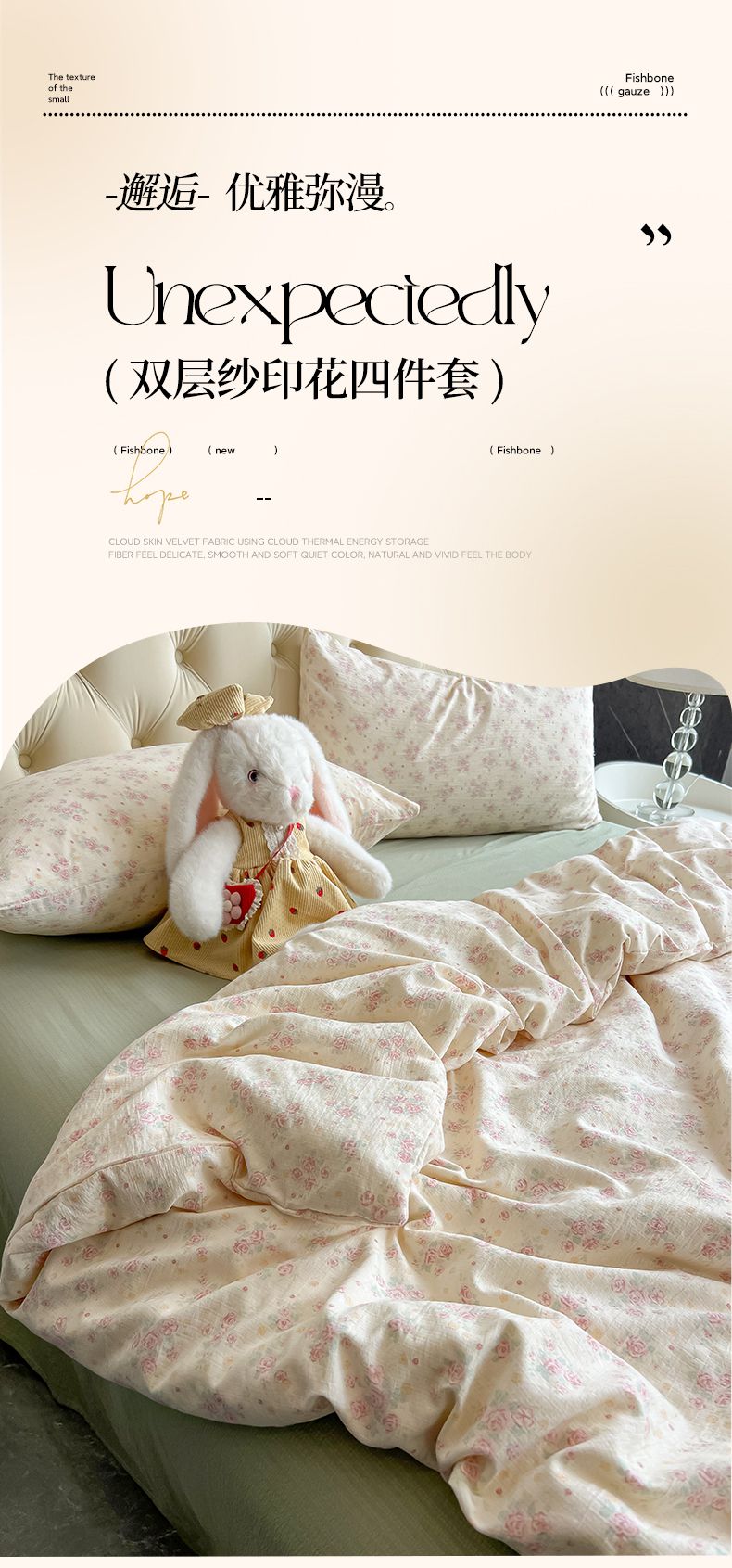 当前位置: 91家纺网 > 商品网购 > 床品套件 > 四件套 > 双层纱四件套 > 韩巢家纺 2025新款双层纱床上用品四件套热销款超柔学生宿舍床单被套三件套 川岛落日