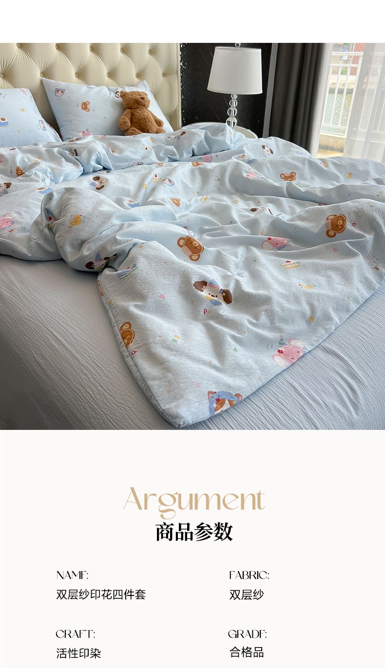 当前位置: 91家纺网 > 商品网购 > 床品套件 > 四件套 > 双层纱四件套 > 韩巢家纺 2025新款双层纱床上用品四件套热销款超柔学生宿舍床单被套三件套 生日宴会兰