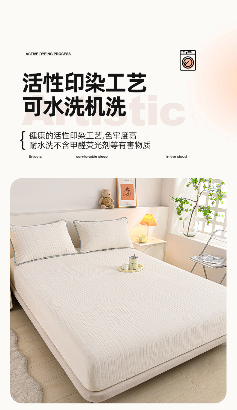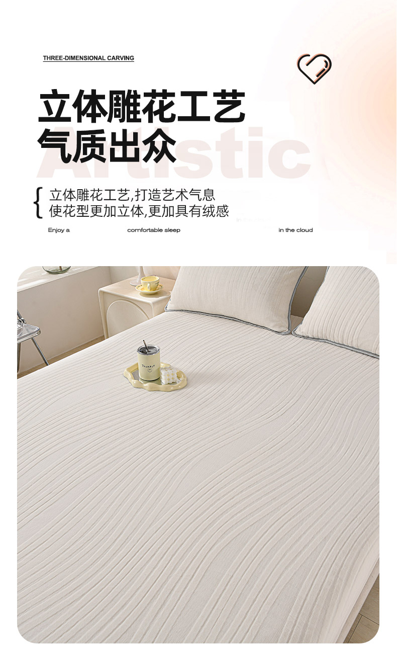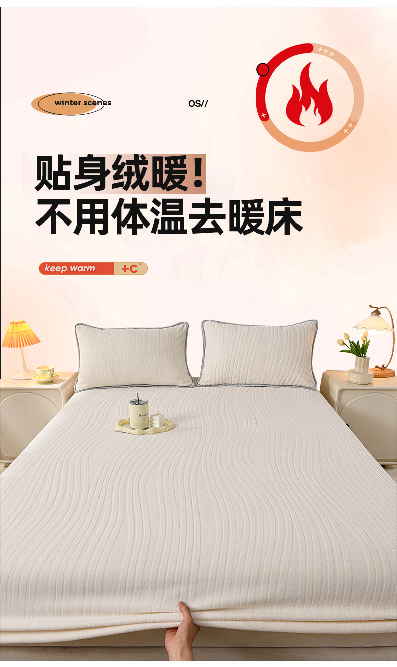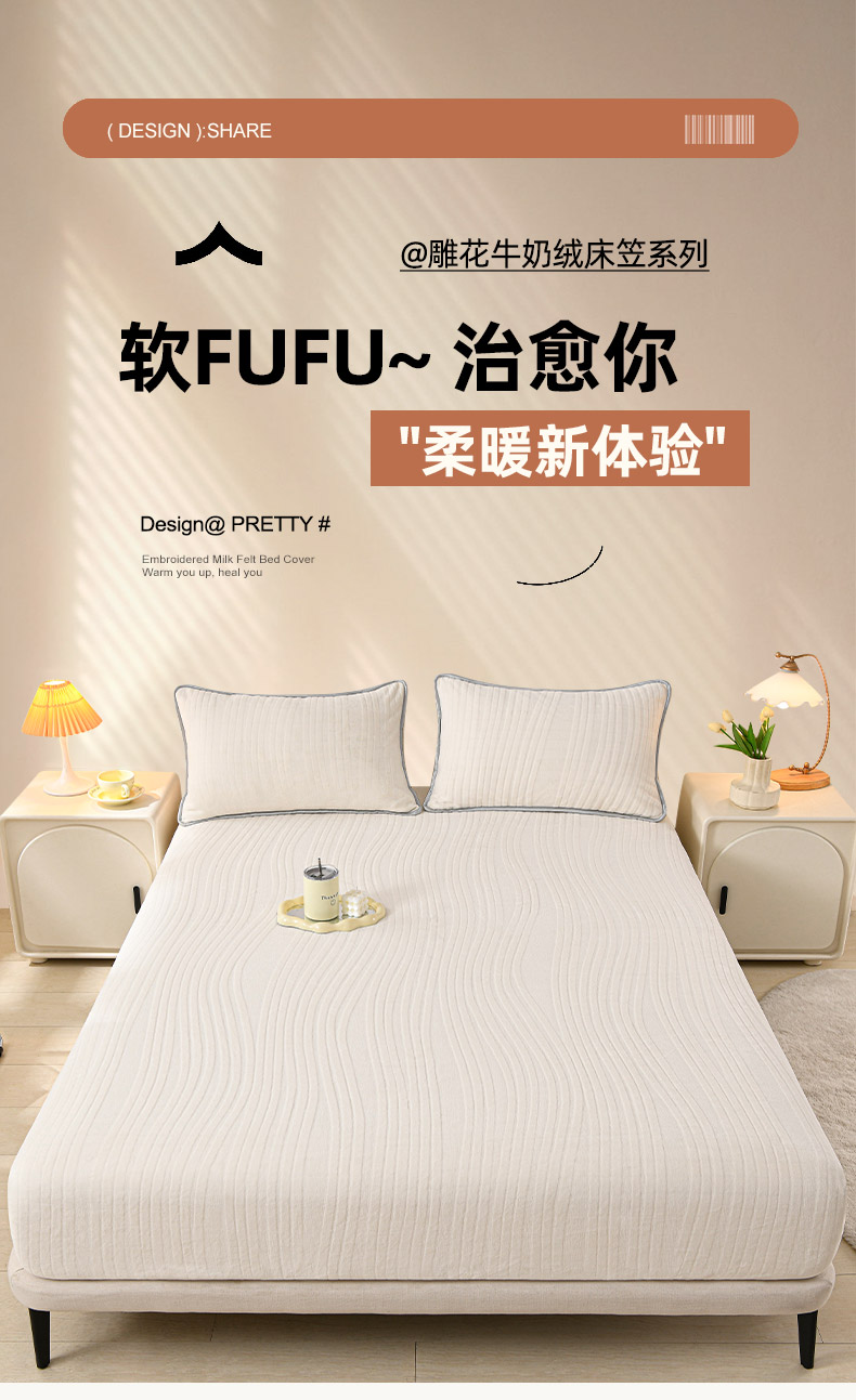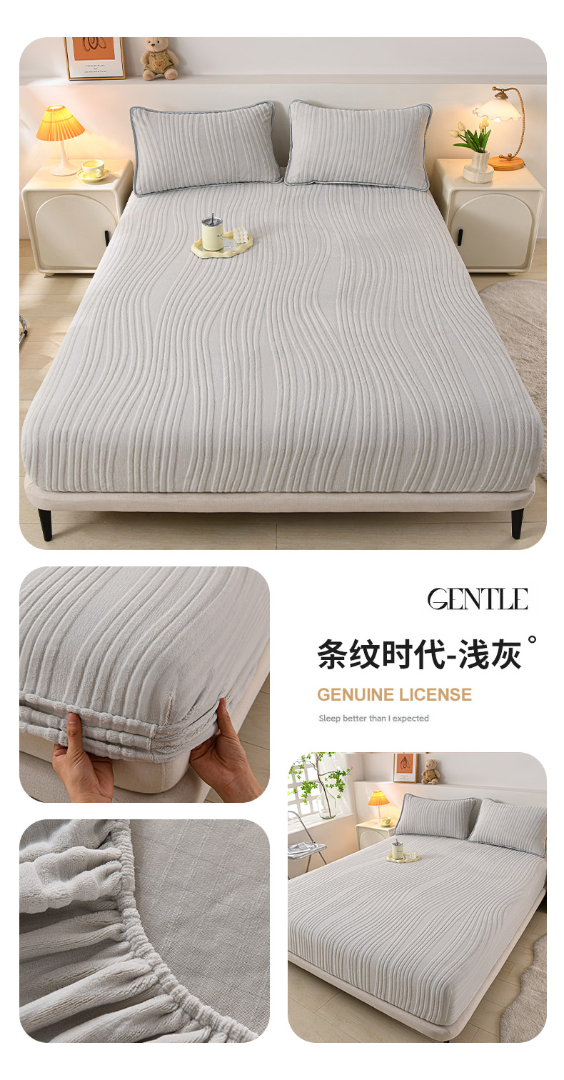 • 91家纺网 家纺一手货源 找家纺 推推家纺 2025新款雕花加厚牛奶绒床笠 条纹时代-米白